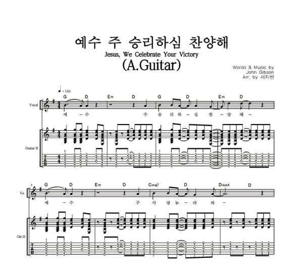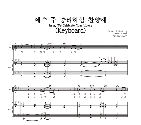 '예수 주 승리하심 찬양해' 의 악보