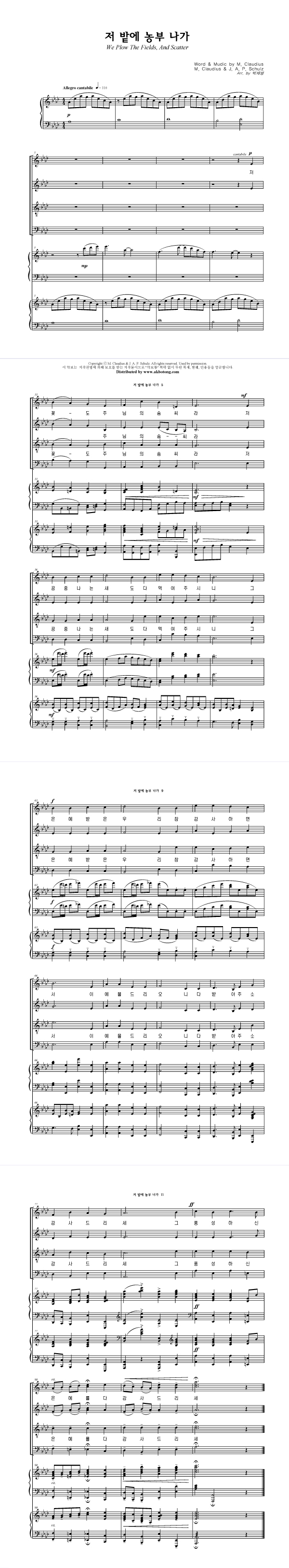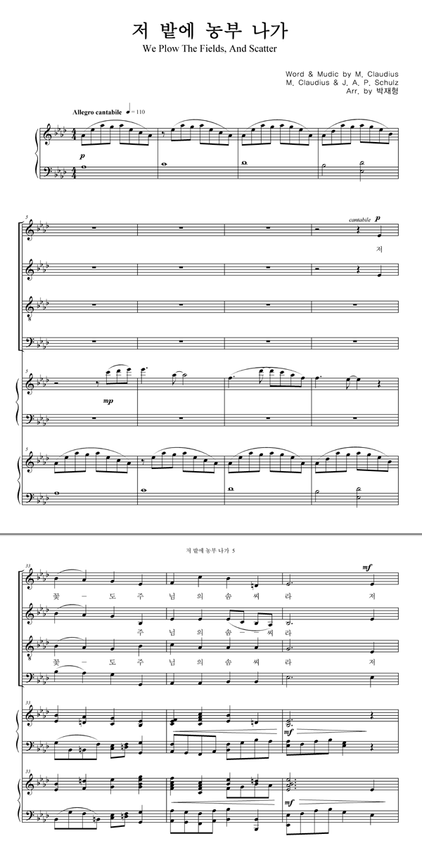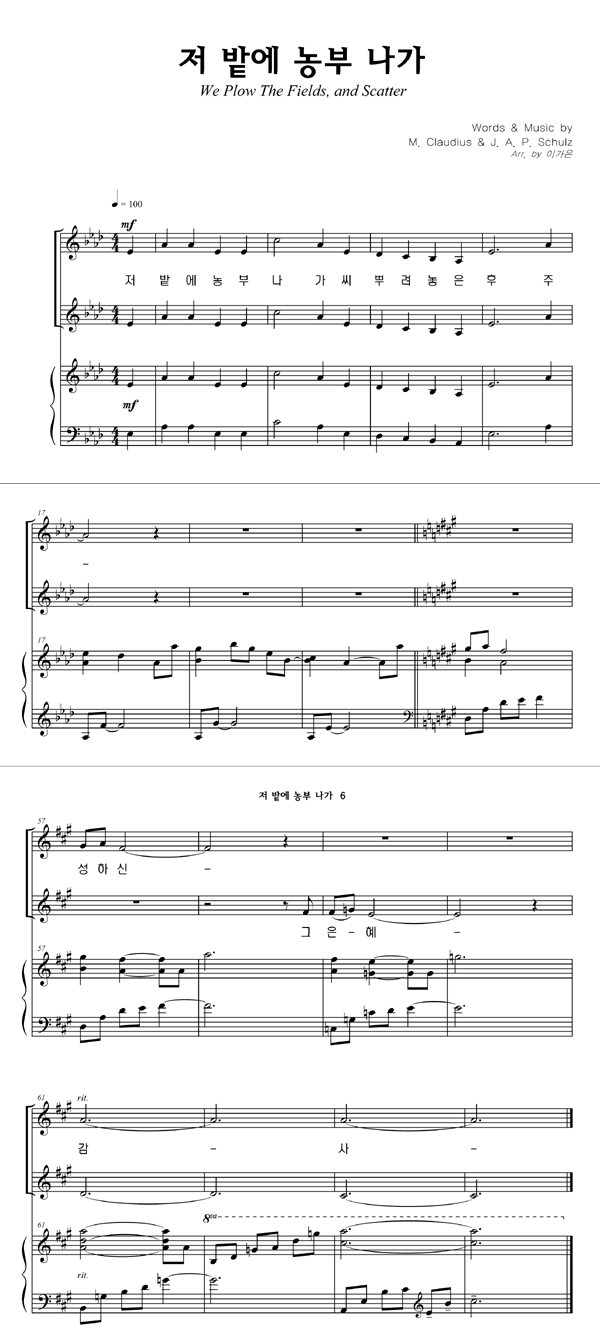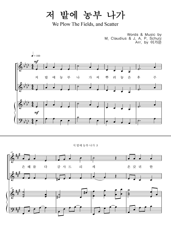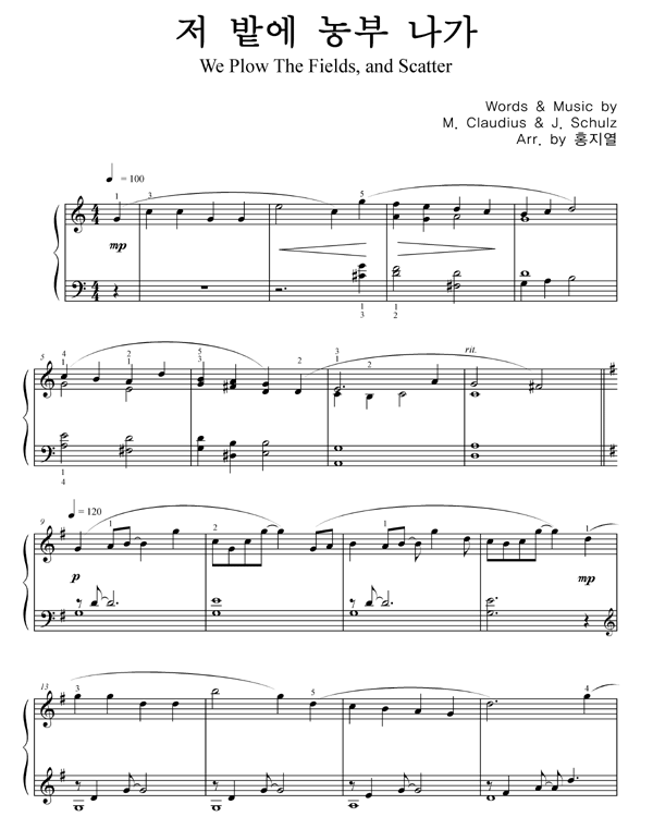 '저 밭에 농부 나가 (찬송가 591장)' 의 악보
