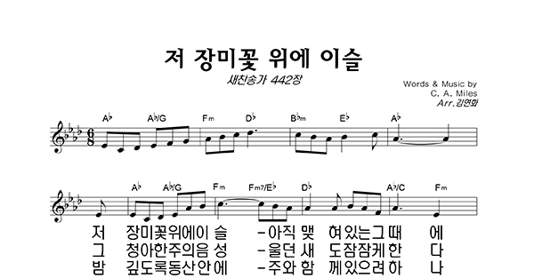'저 장미꽃 위에 이슬 (찬송가 442장)' 의 악보