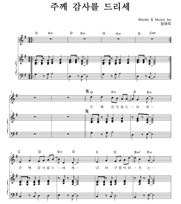 '주께 감사를 드리세' 의 악보