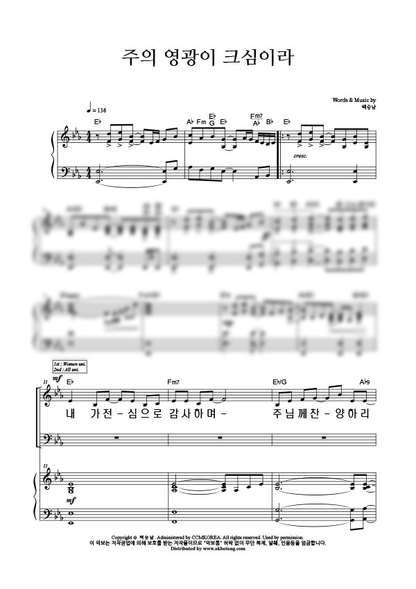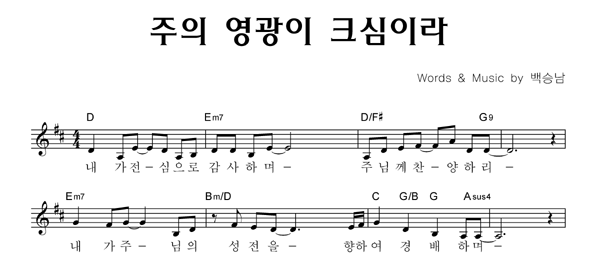 '주의 영광이 크심이라' 의 악보