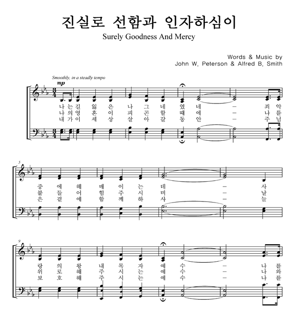 진실로 선함과 인자하심이(John W. Peterson 곡)