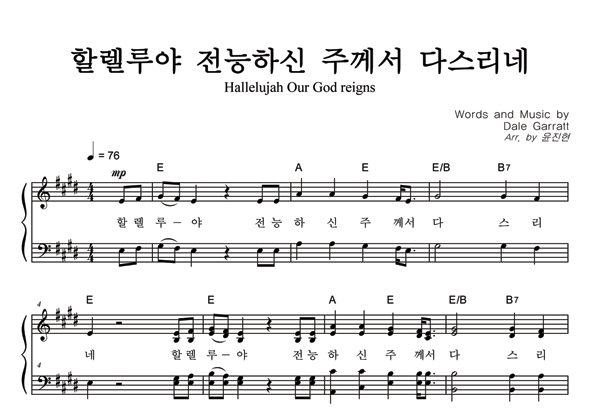 '할렐루야 전능하신 주께서 다스리네' 의 악보
