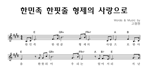 '한민족 한핏줄 형제의 사랑으로' 의 악보