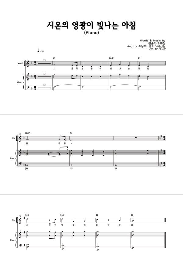 '시온의 영광이 빛나는 아침 (전용희 편곡)' 의 악보