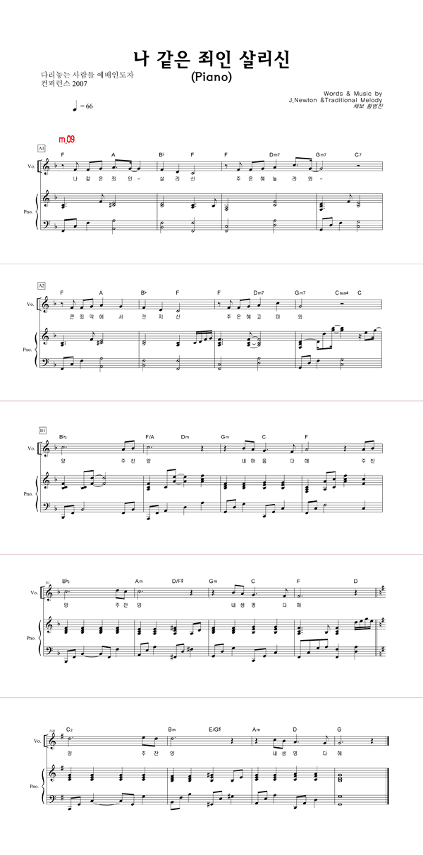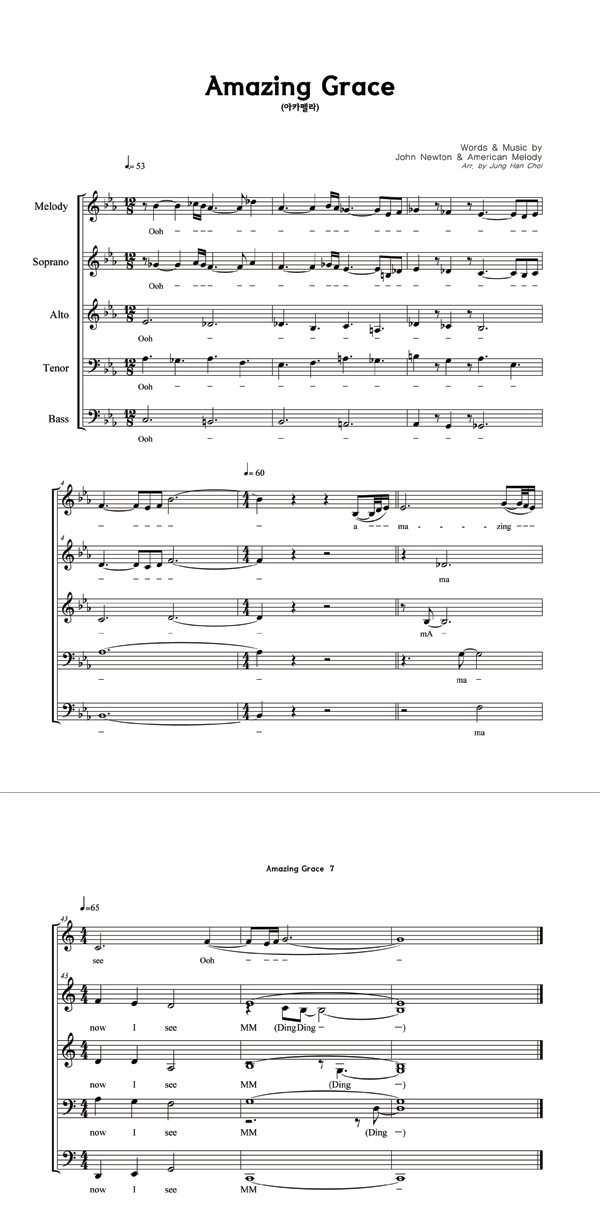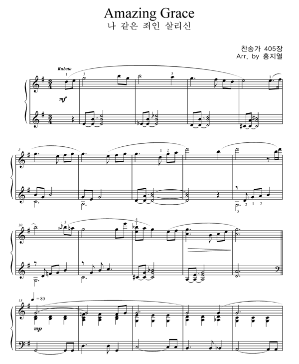 '나 같은 죄인 살리신 (찬송가 305장)' 의 악보