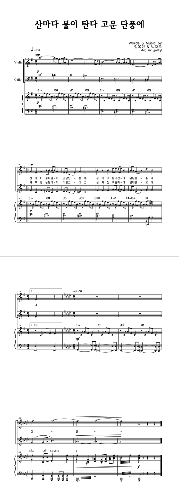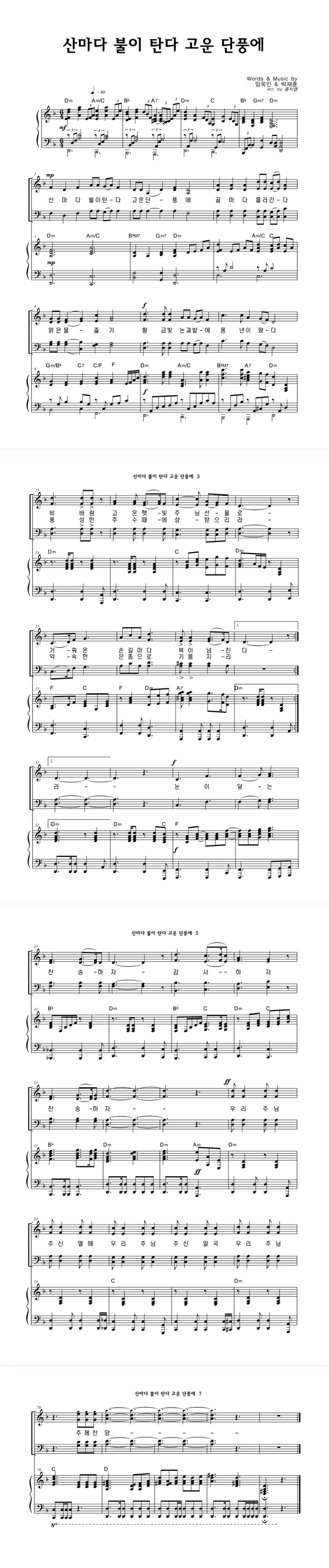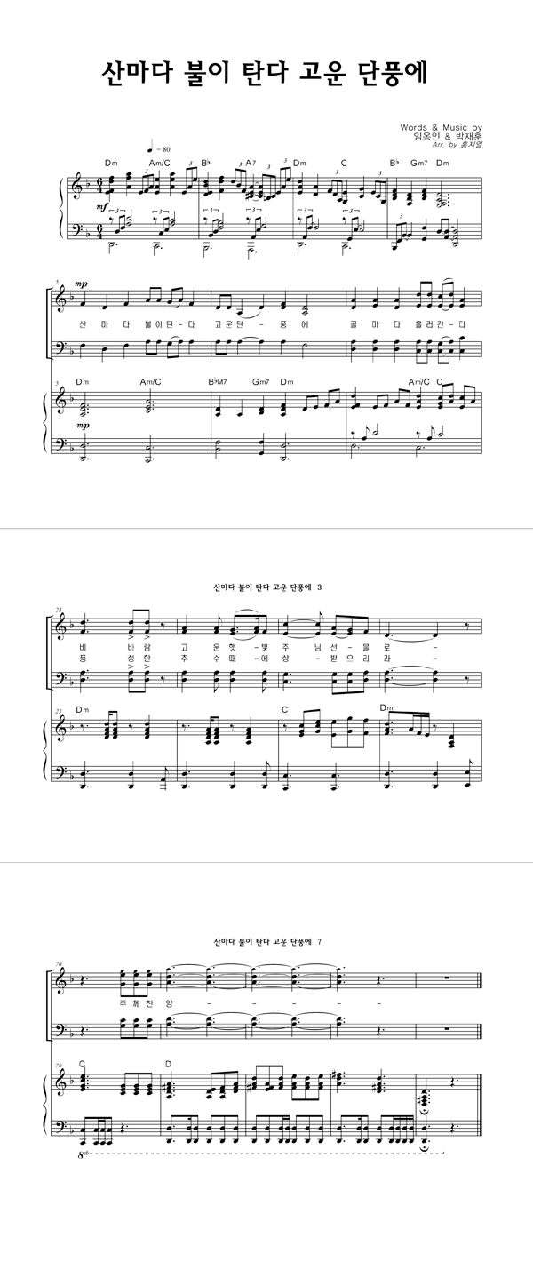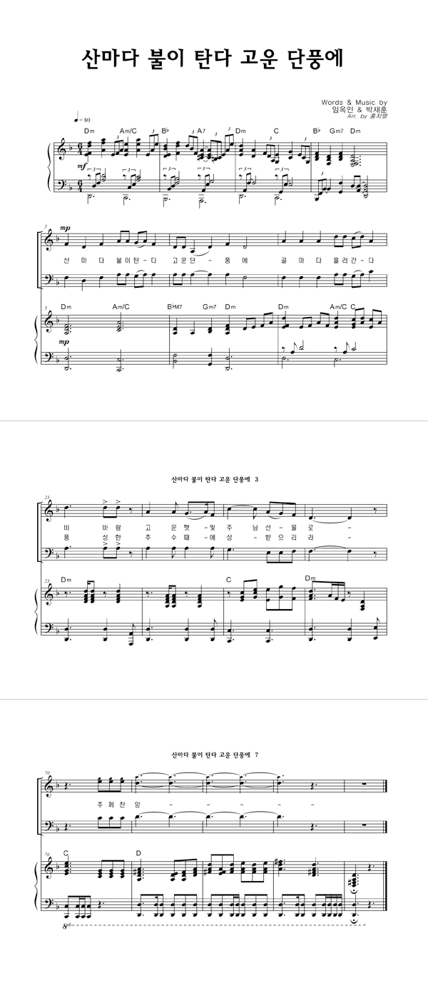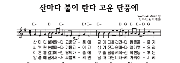'산마다 불이탄다 고운단풍에' 의 악보