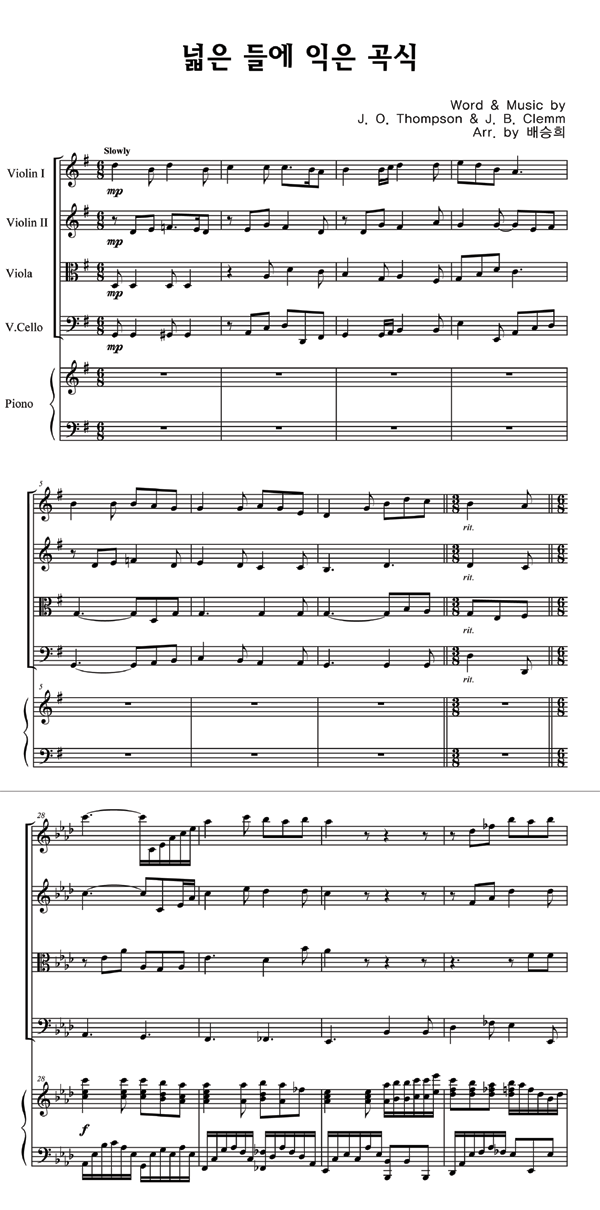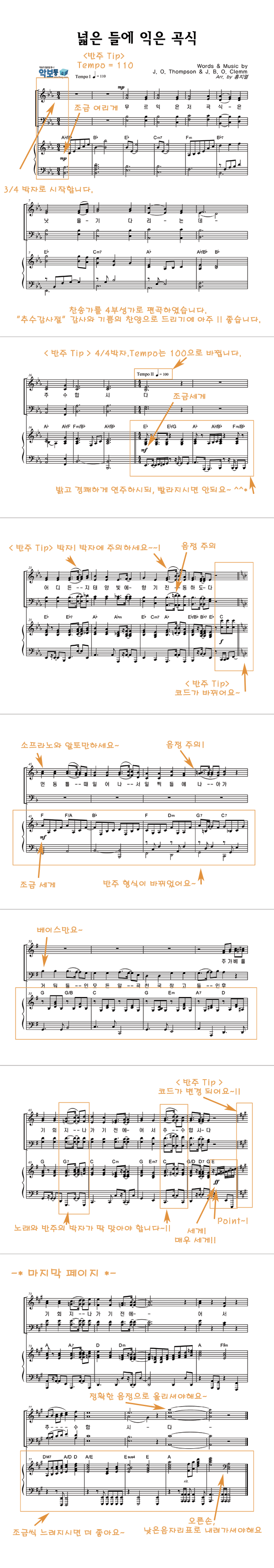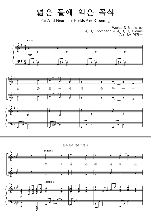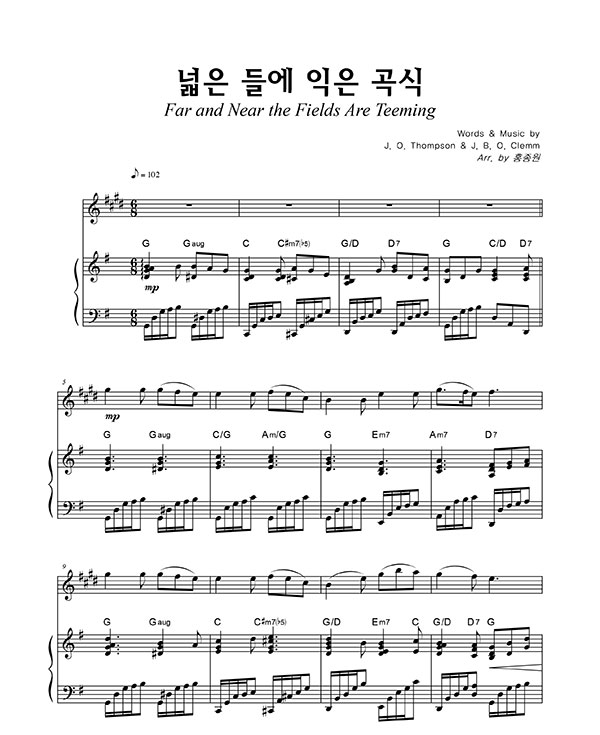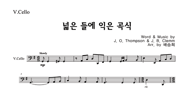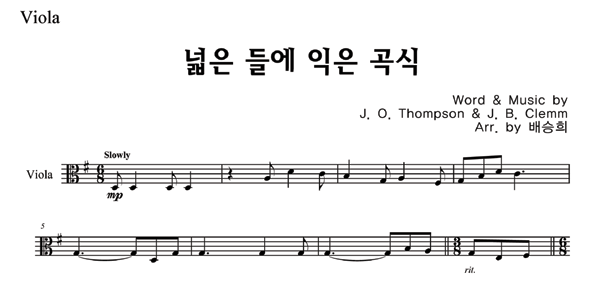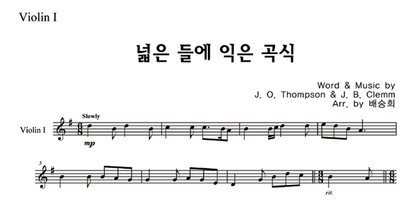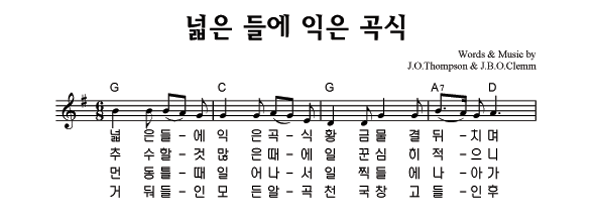 '넓은 들에 익은 곡식 (찬송가 589장)' 의 악보