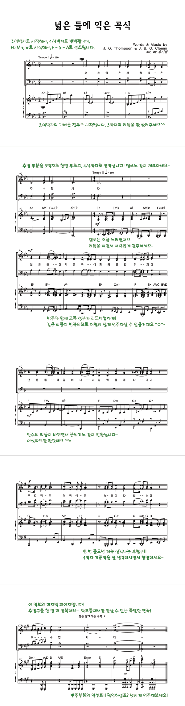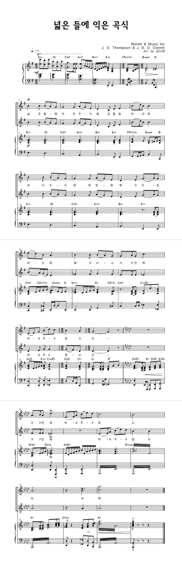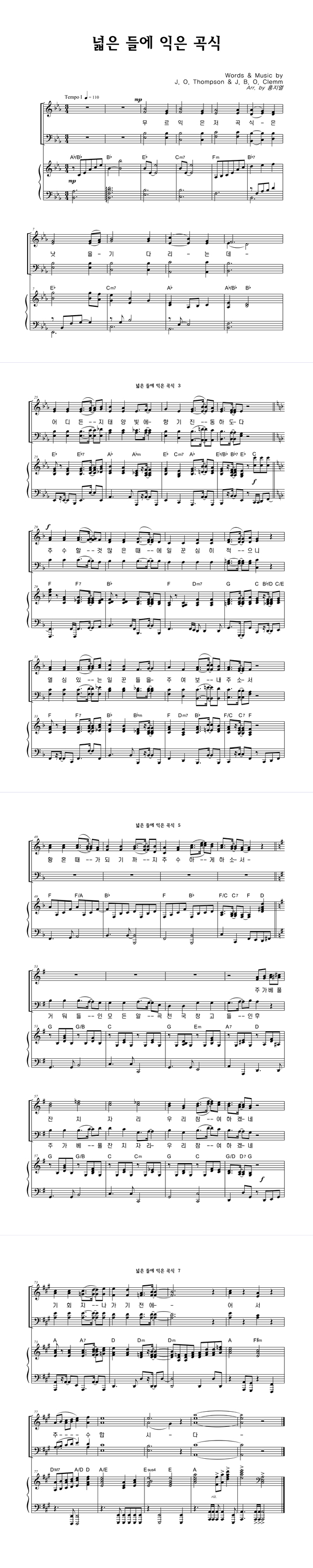 '넓은 들에 익은 곡식 (찬송가 589장)' 의 악보