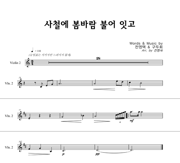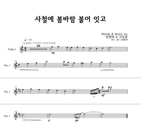 '사철에 봄바람 불어 잇고 (찬송가 559장)' 의 악보