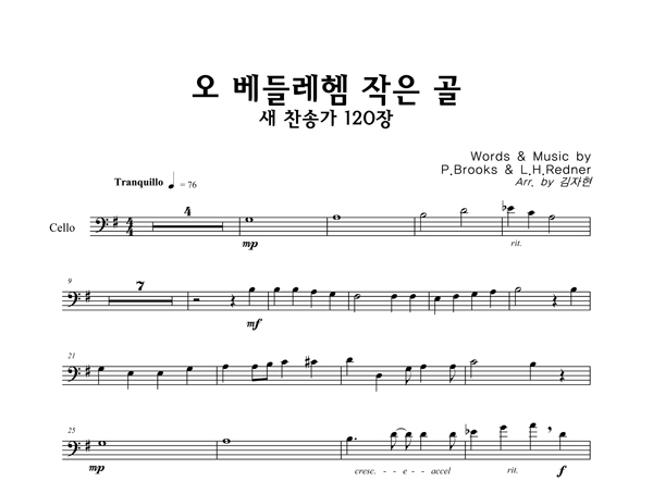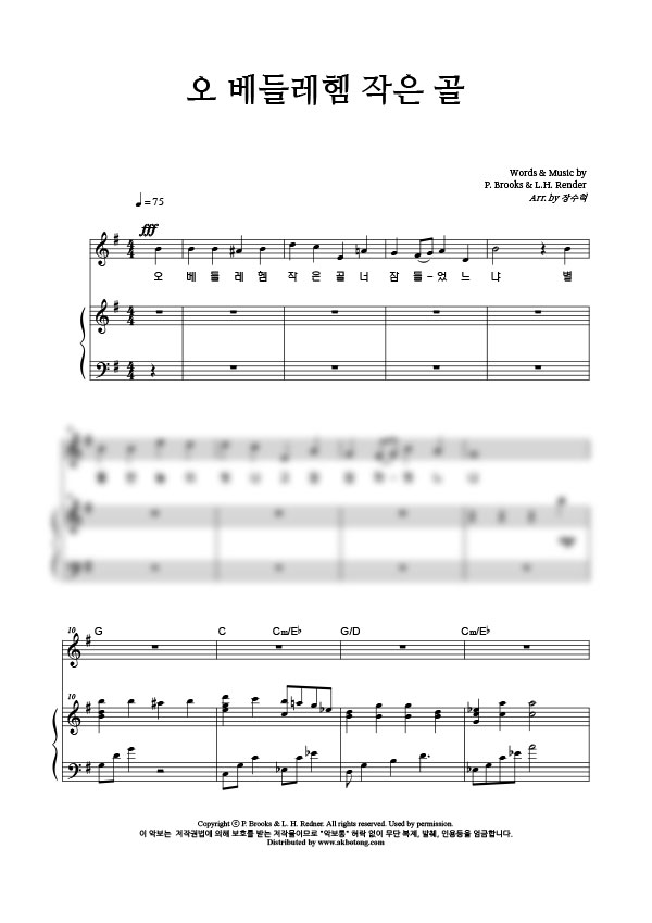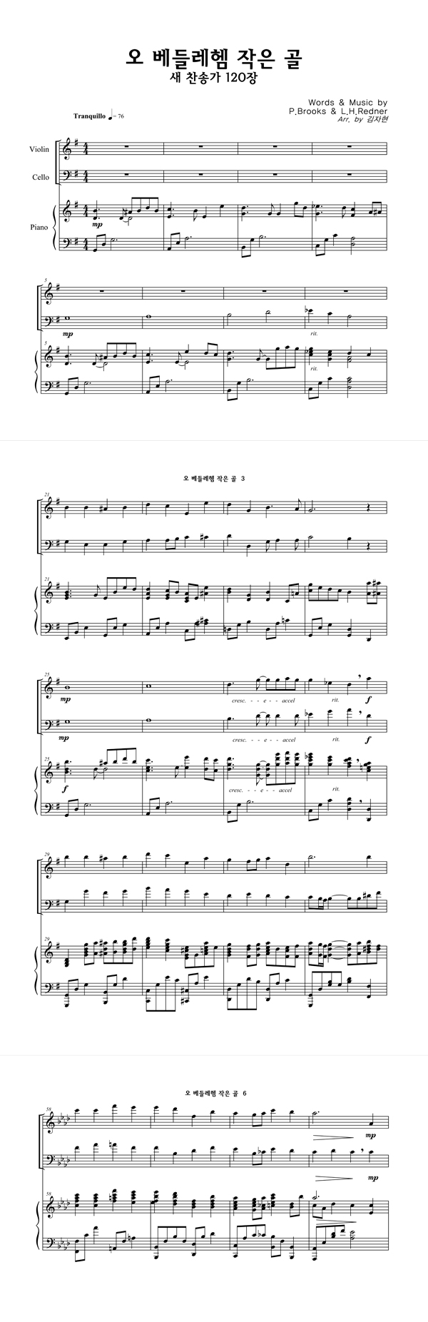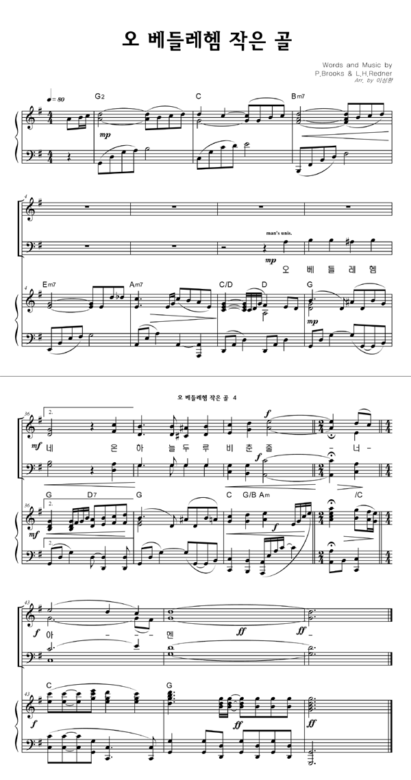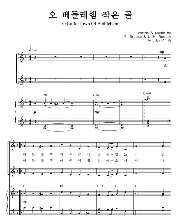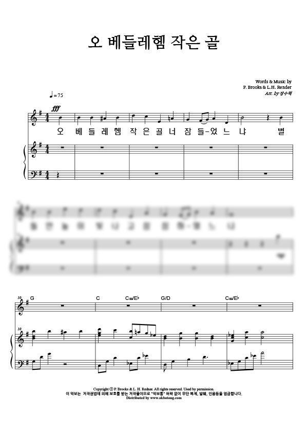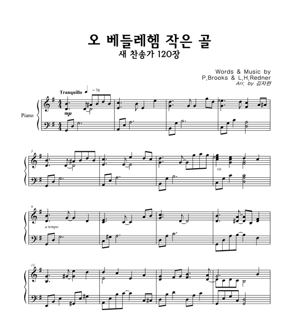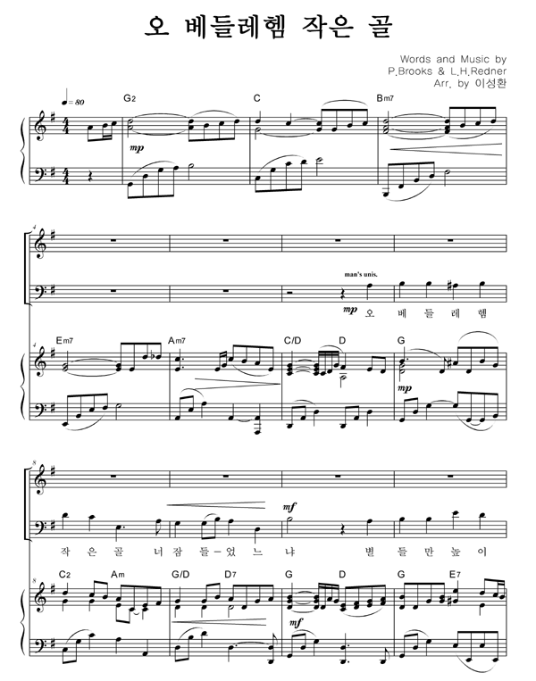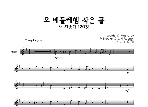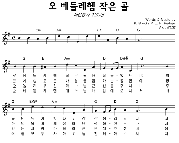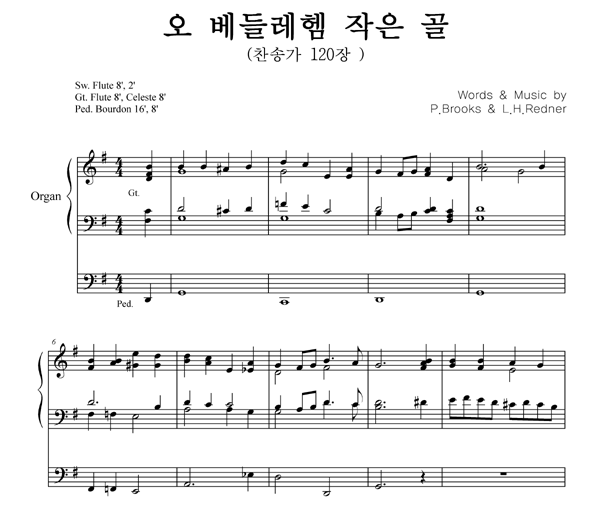 '오 베들레헴 작은 골 (찬송가 120장)' 의 악보