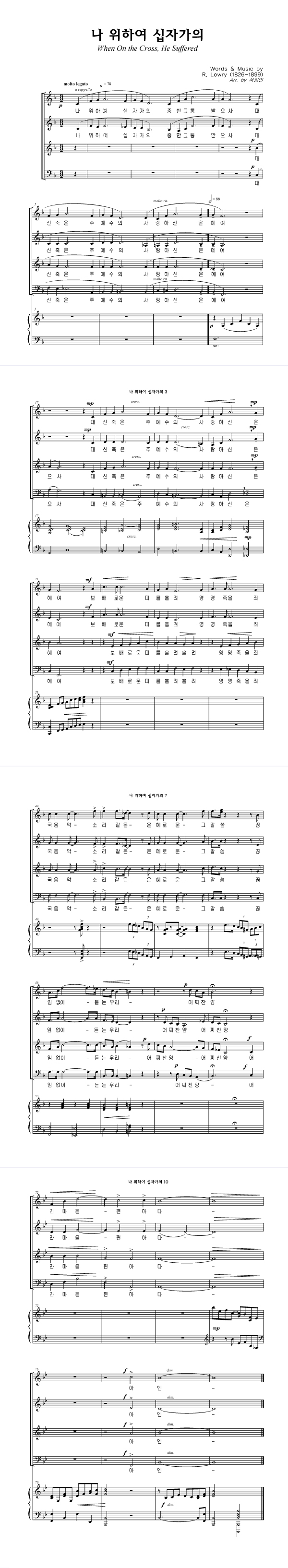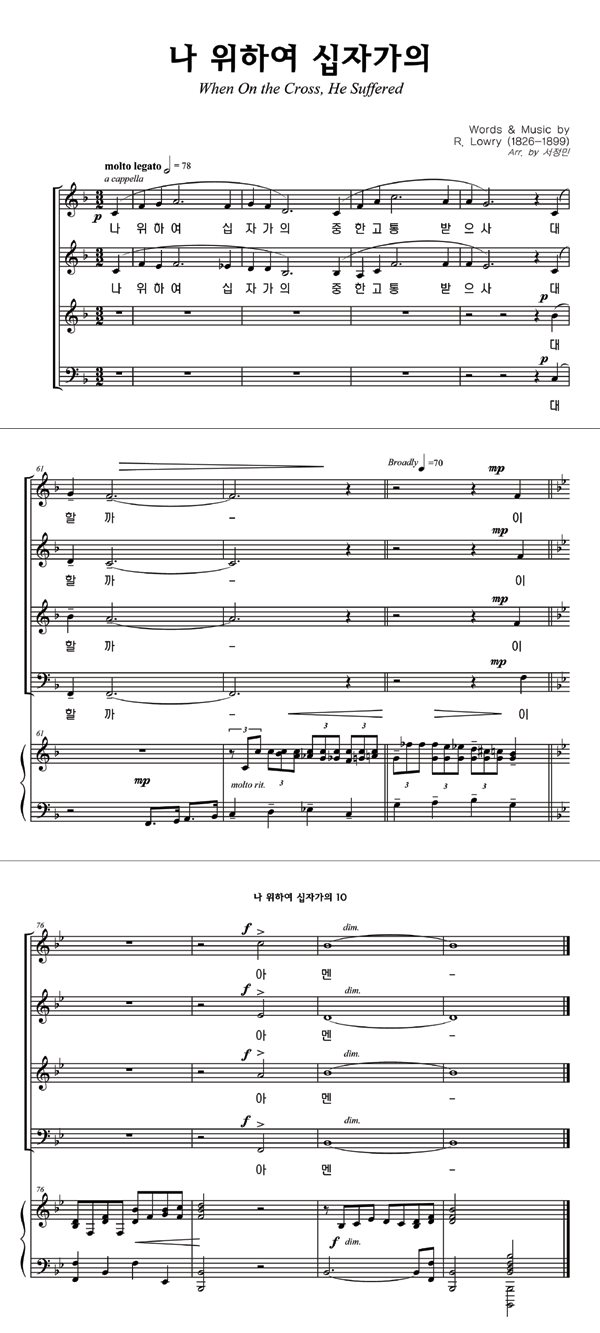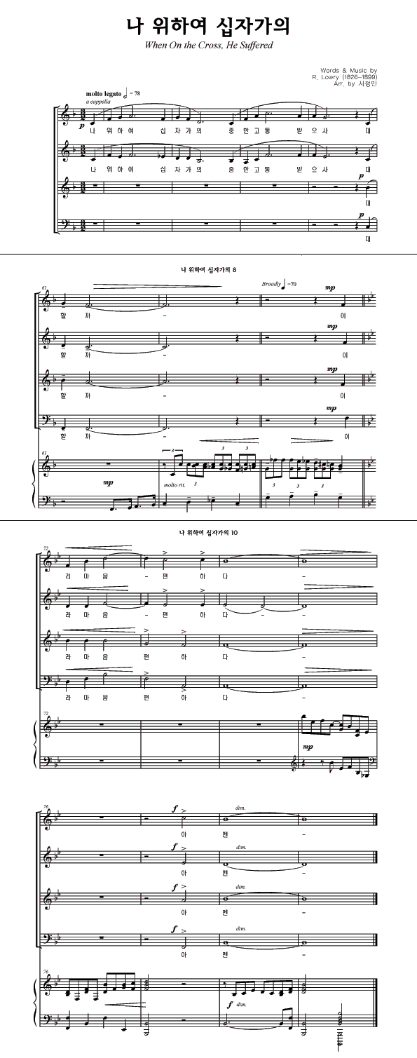 '나 위하여 십자가의' 의 악보