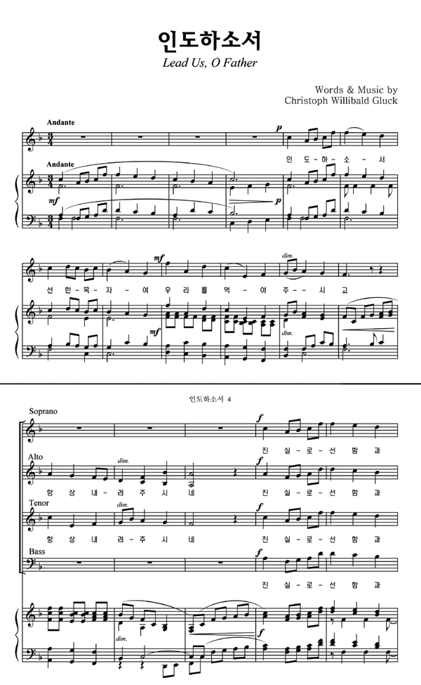 성가4부 + 피아노 반주 Christoph Willibald Gluck/Christoph Willibald Gluck