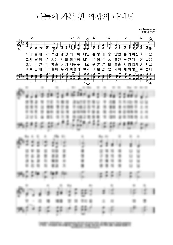 '찬송가 9장 / 하늘에 가득 찬 영광의 하나님' 의 악보