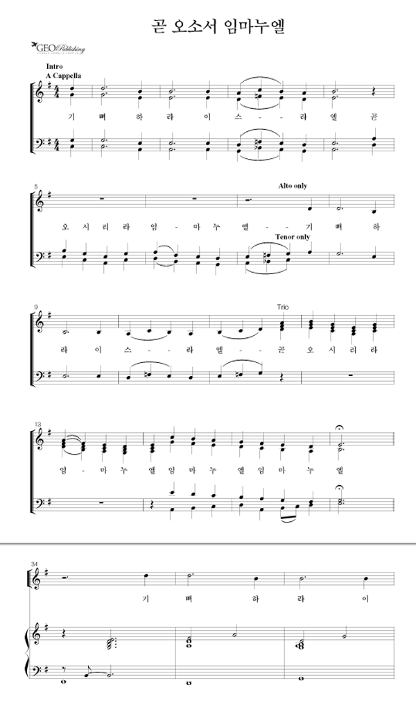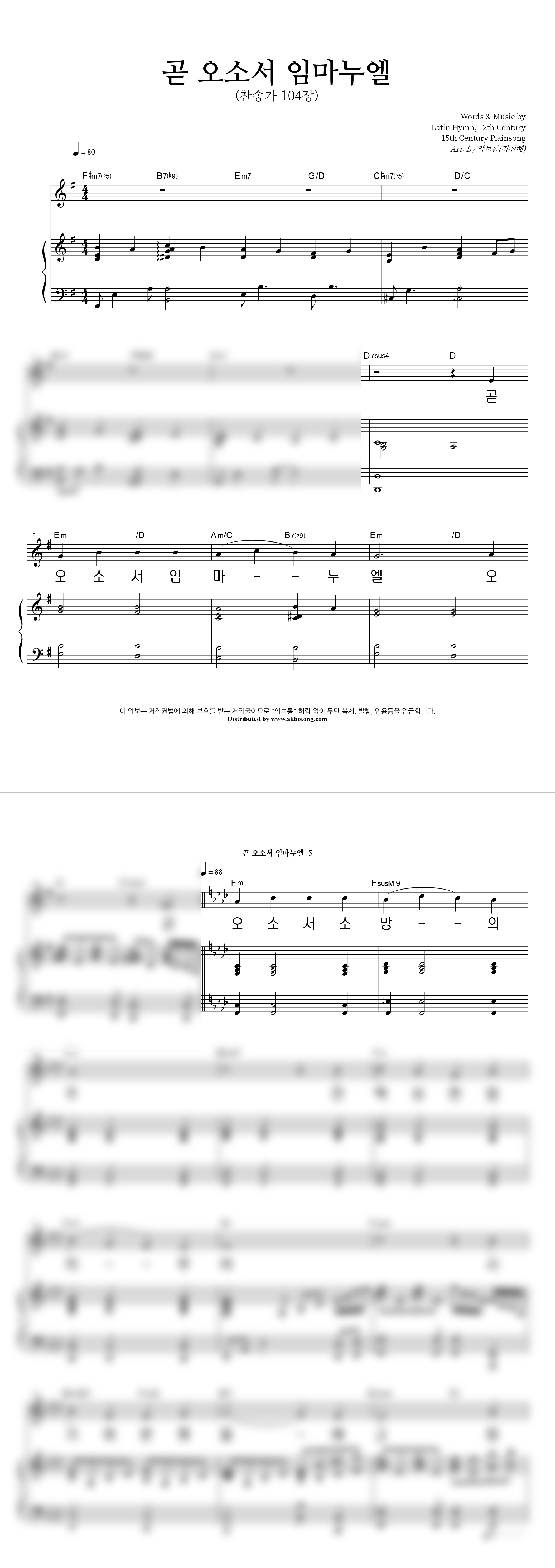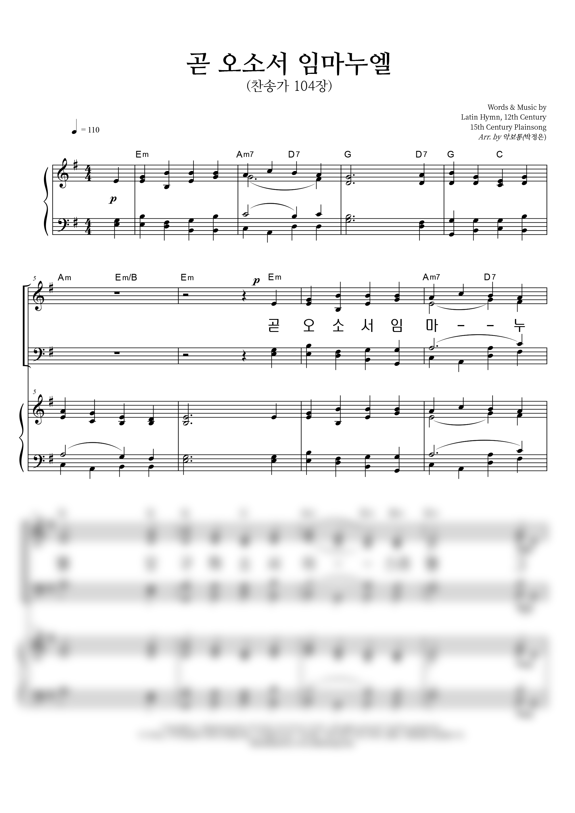 '[2025 성탄절 신곡] 곧 오소서 임마누엘' 의 악보