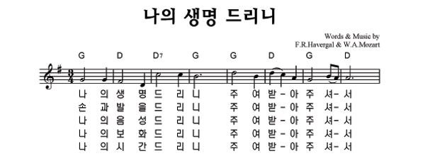 '나의 생명 드리니' 의 악보