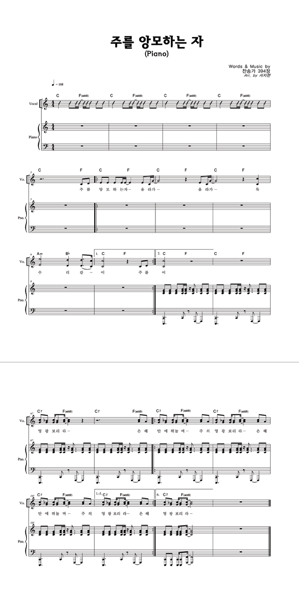 '주를 앙모하는자' 의 악보