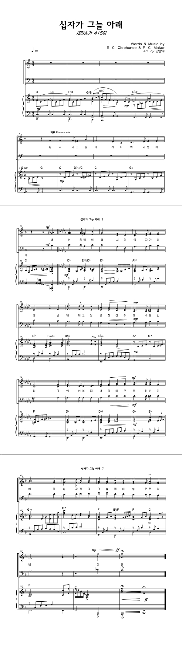 '십자가 그늘 아래' 의 악보
