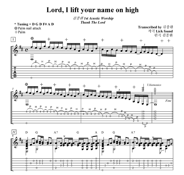 'Lord, I lift your name on high' 의 악보