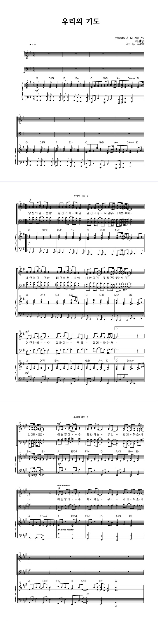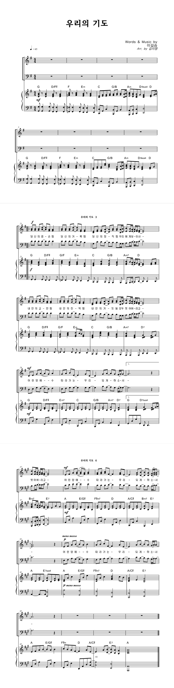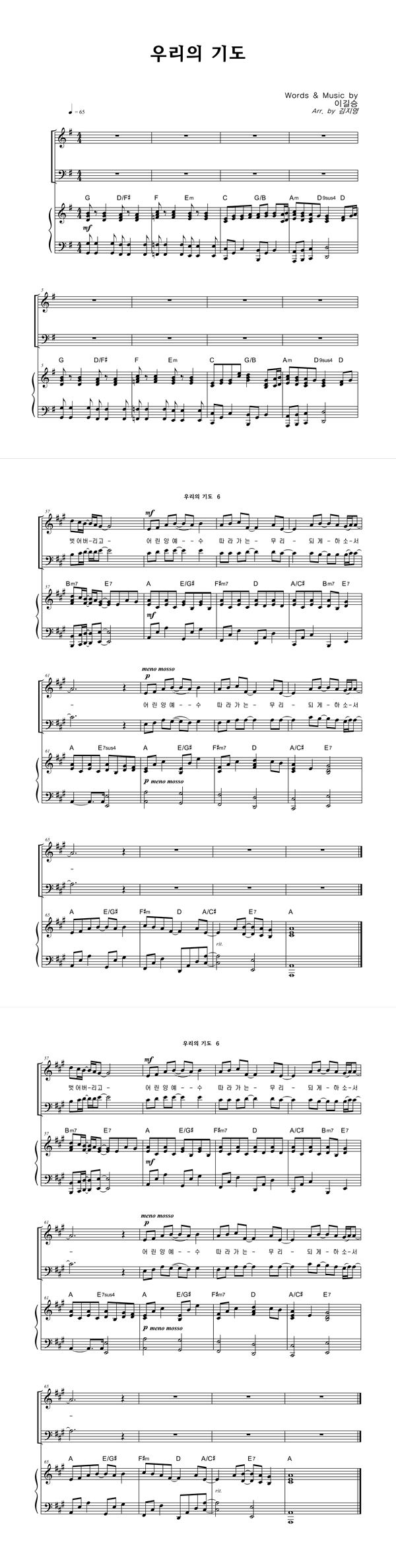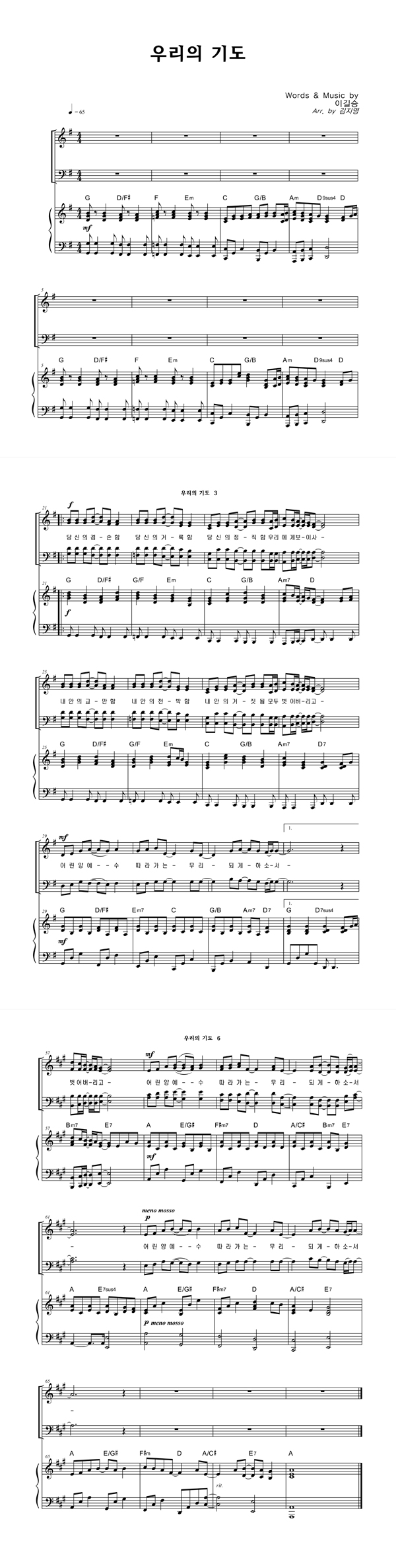 '우리의 기도' 의 악보