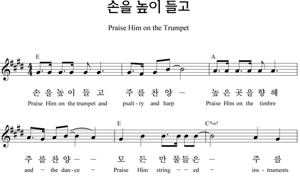'손을 높이 들고' 의 악보