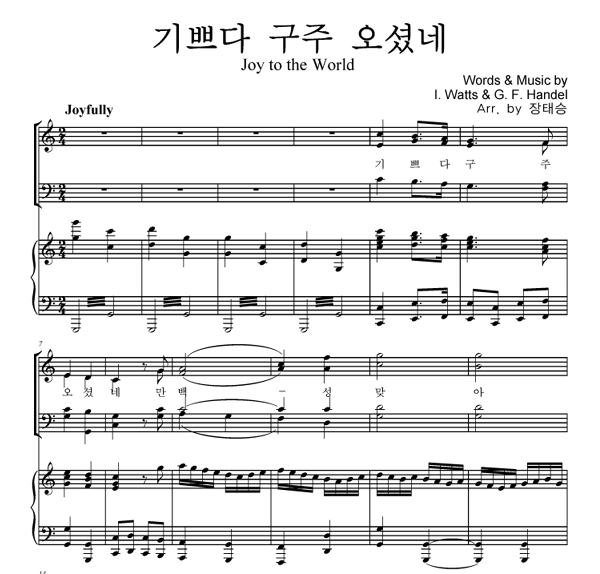 '기쁘다 구주 오셨네 (찬송가 115장)' 의 악보