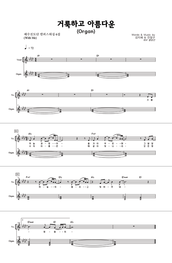 '거룩하고 아름다운' 의 악보