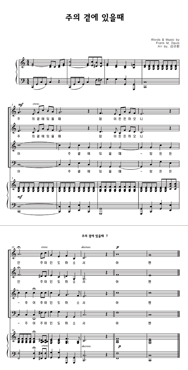 '주의 곁에 있을 때' 의 악보