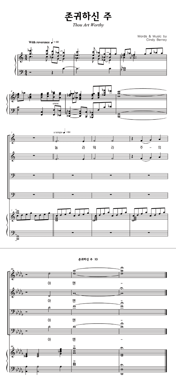 '존귀하신 주' 의 악보