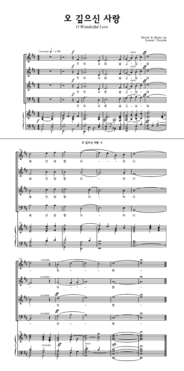 '오 깊으신 사랑' 의 악보