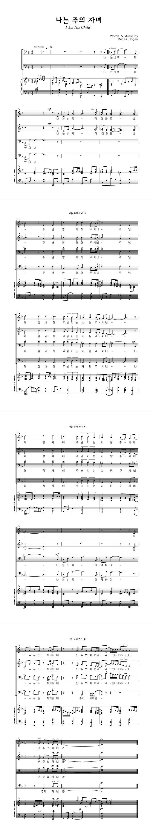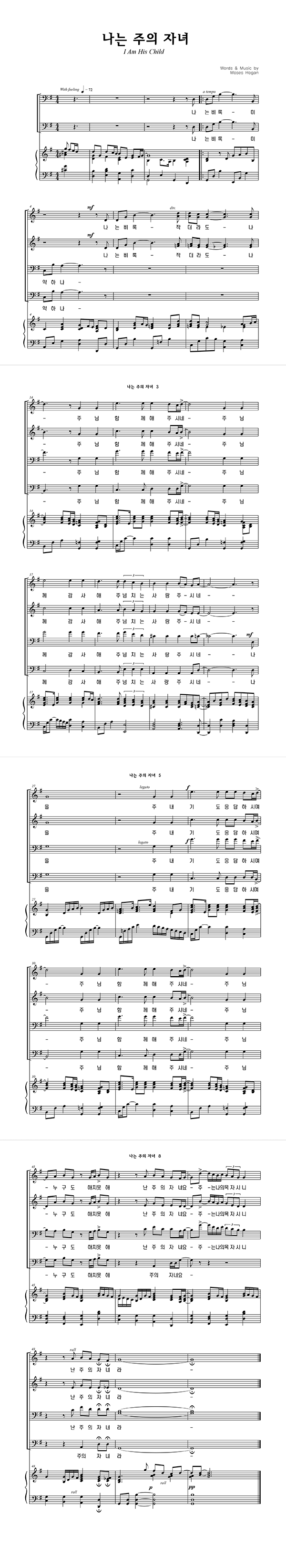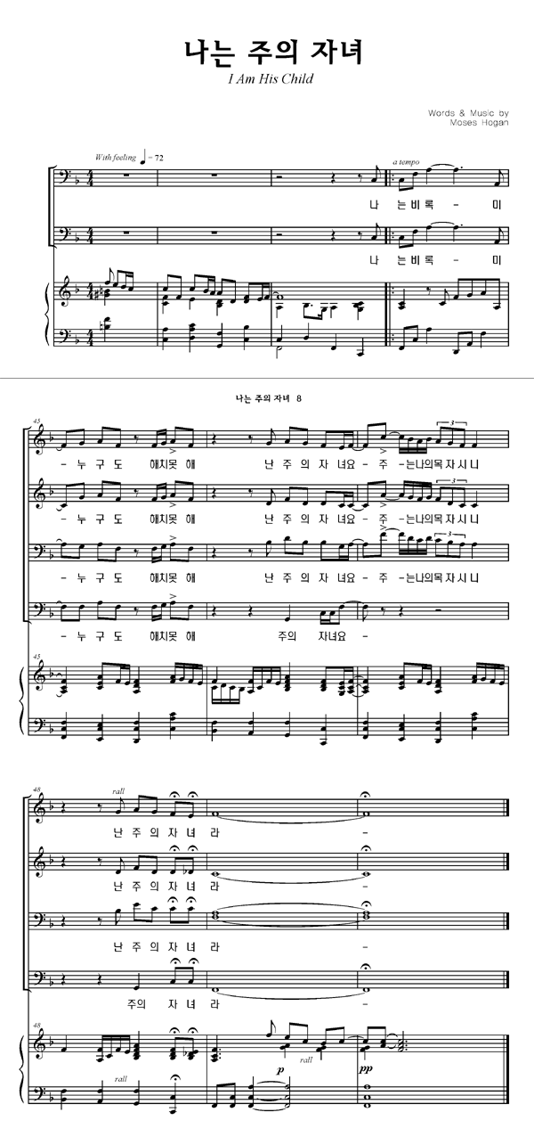 '나는 주의 자녀' 의 악보