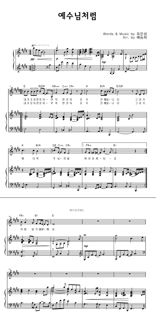 '예수님처럼' 의 악보
