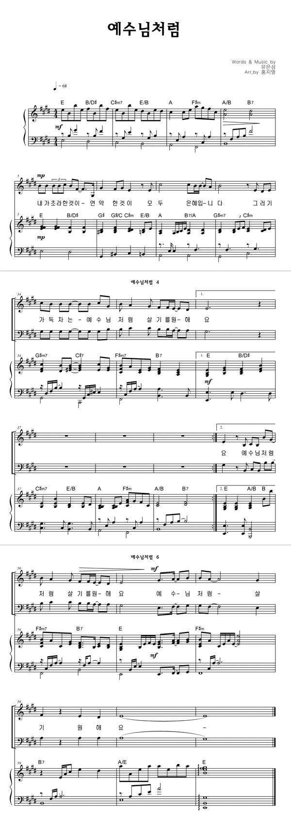 '예수님처럼' 의 악보