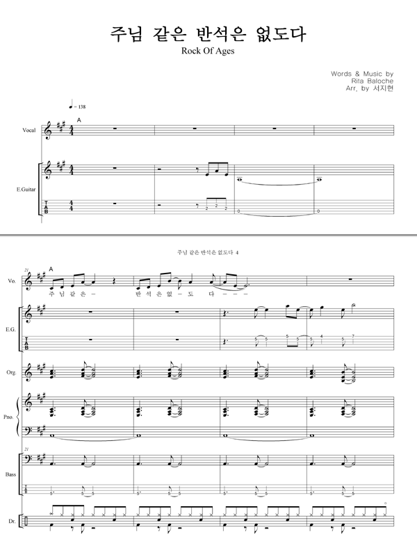 '만세 반석(주님 같은 반석은 없도다)' 의 악보