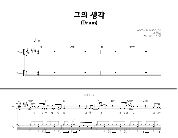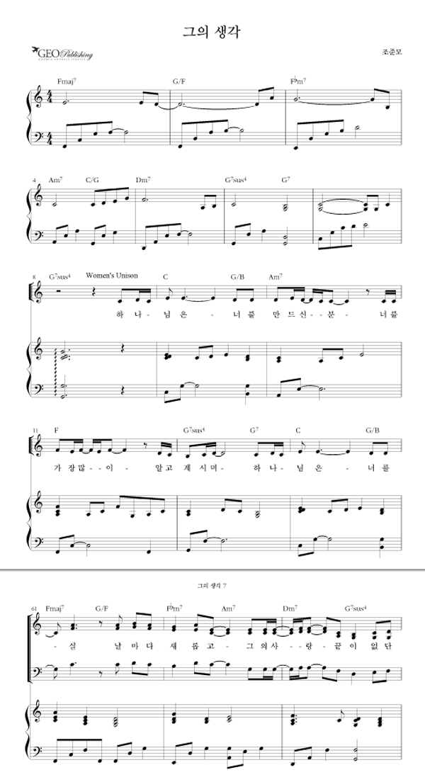 '그의 생각' 의 악보