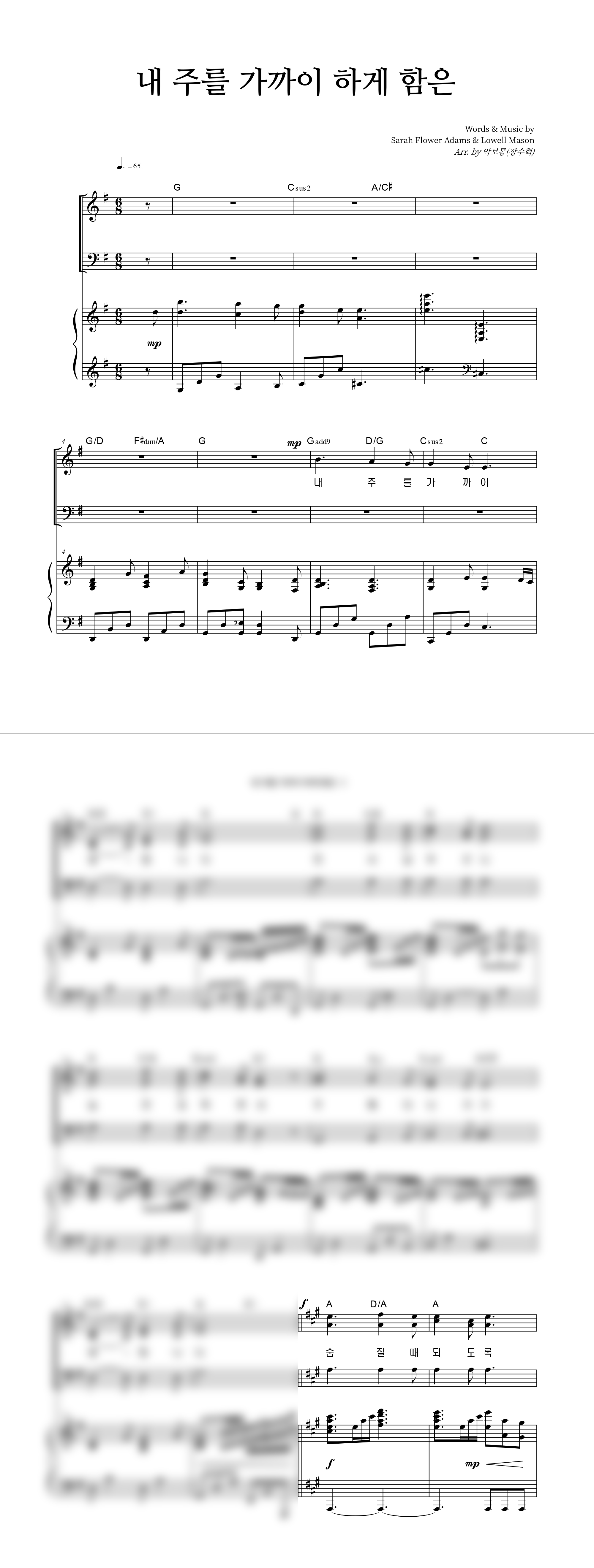 '내 주를 가까이 하게 함은 (찬송가 338장)' 의 악보
