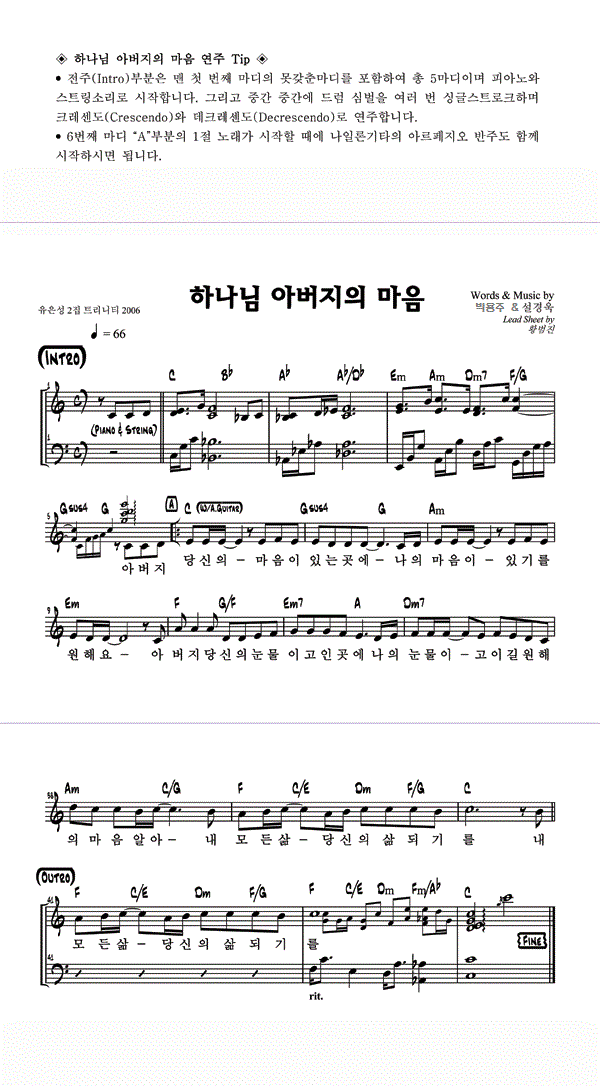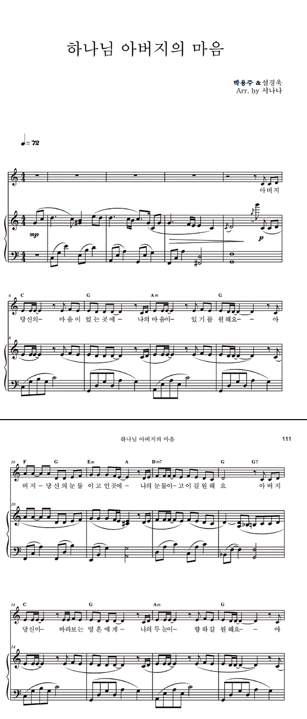 '하나님 아버지의 마음' 의 악보
