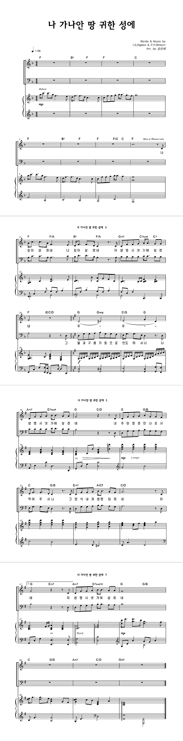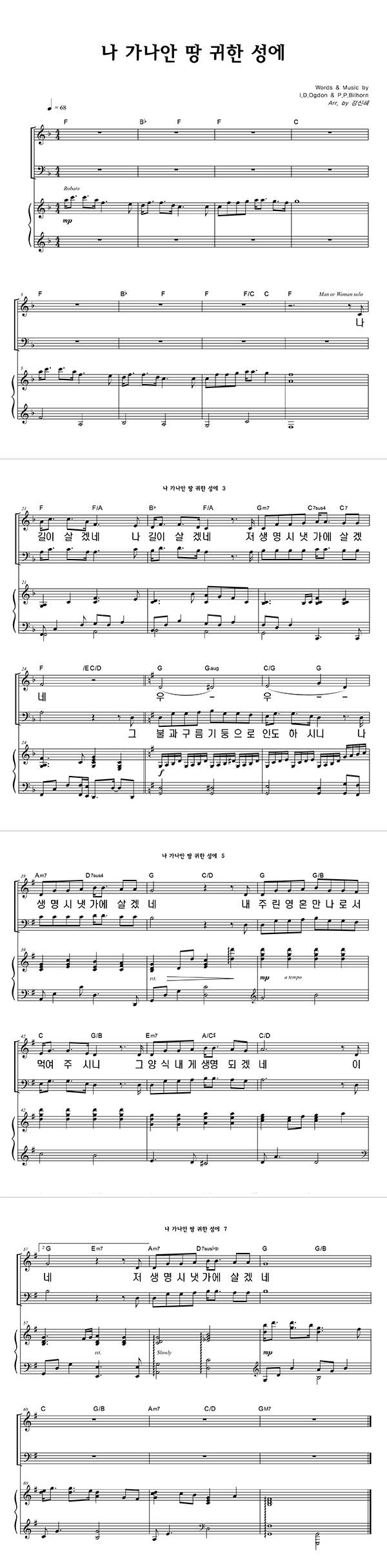 '나 가나안 땅 귀한 성에 (찬송가 246장)' 의 악보