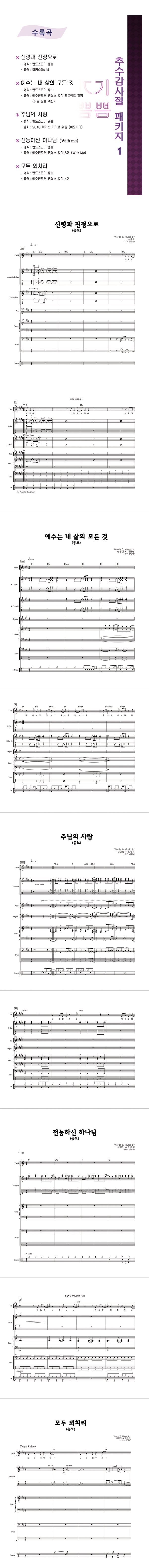 '추수감사절 밴드 패키지 5곡 (신령과 진정으로, 예수는 내 삶의 모든 것, 주님의 사랑, 전능하신 하나님, 모두 외치리)' 의 악보