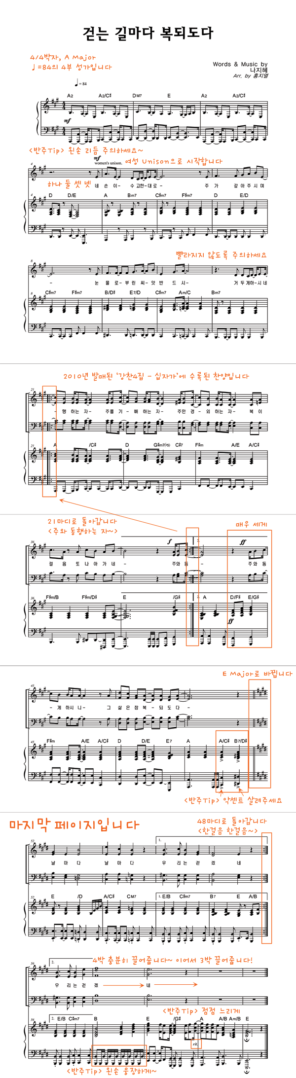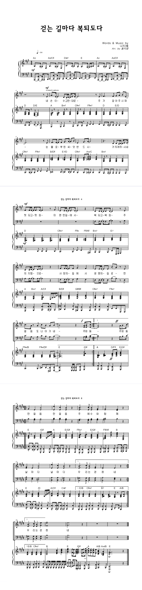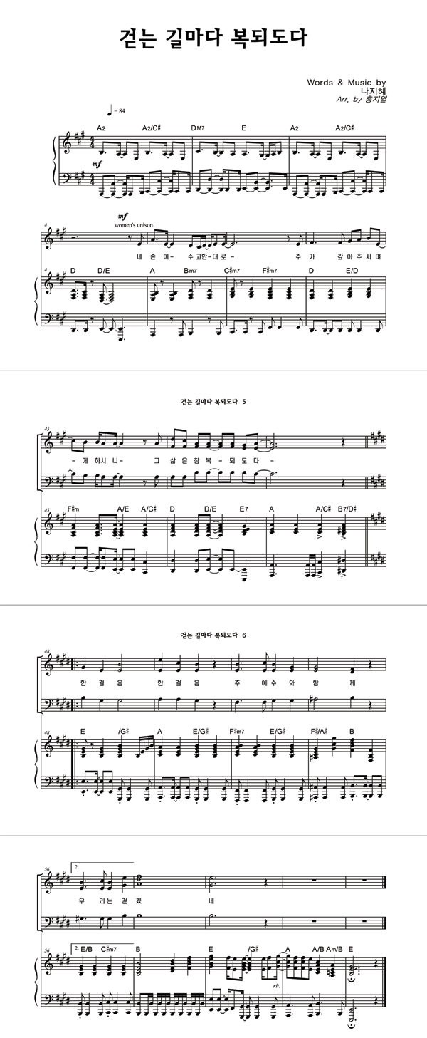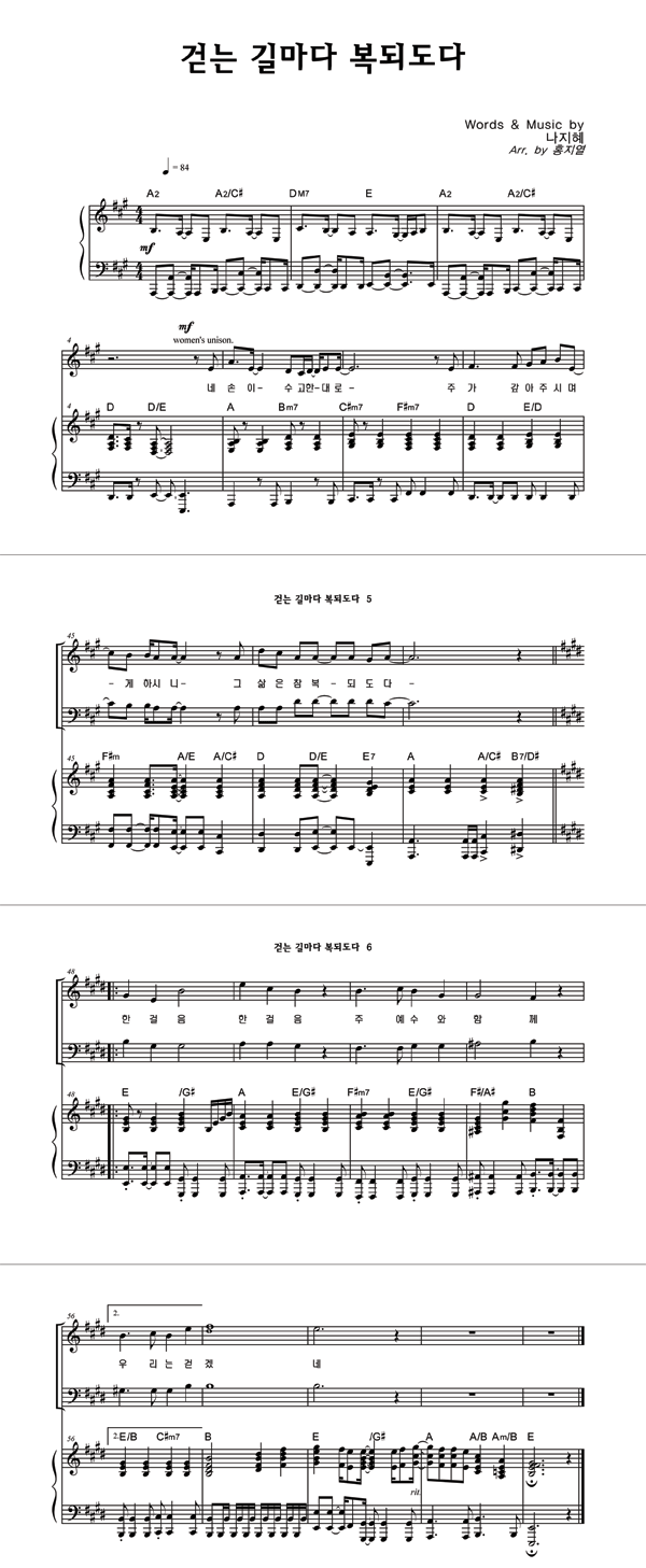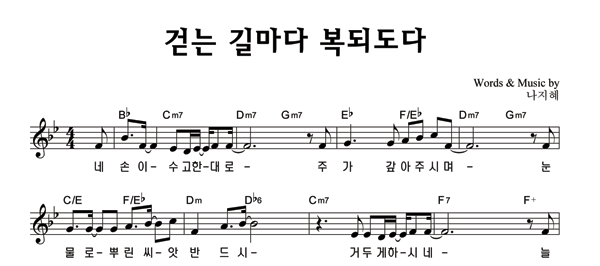 '걷는 길마다 복되도다' 의 악보