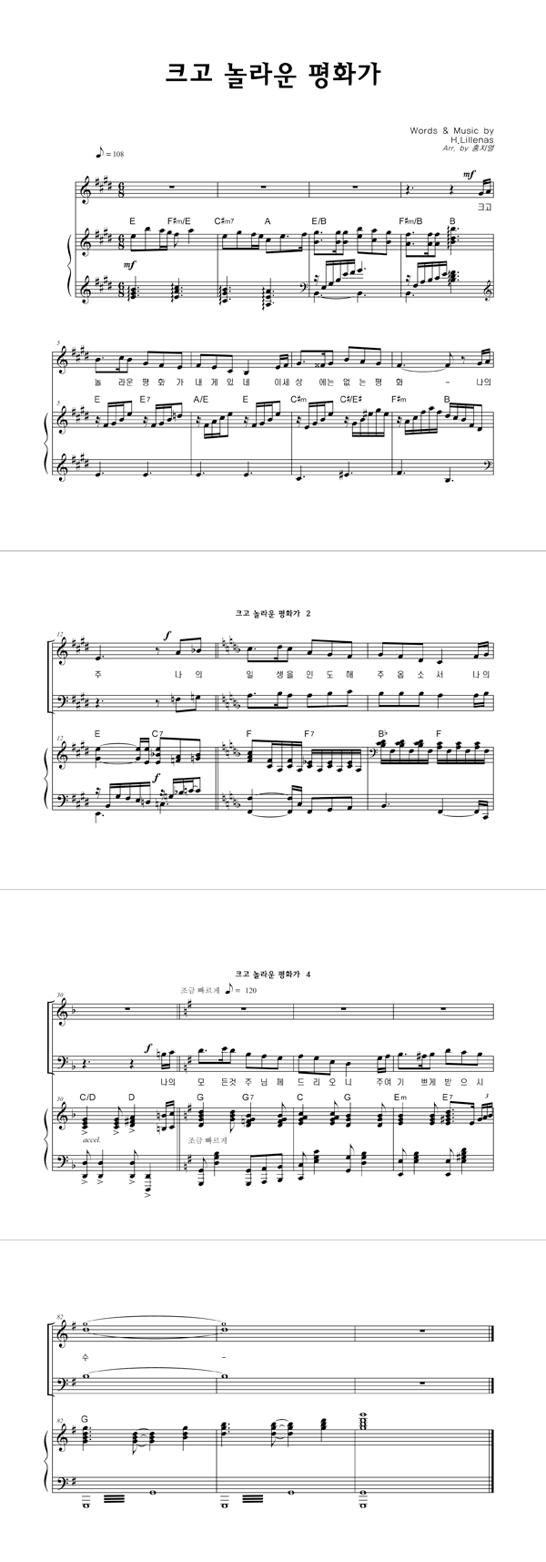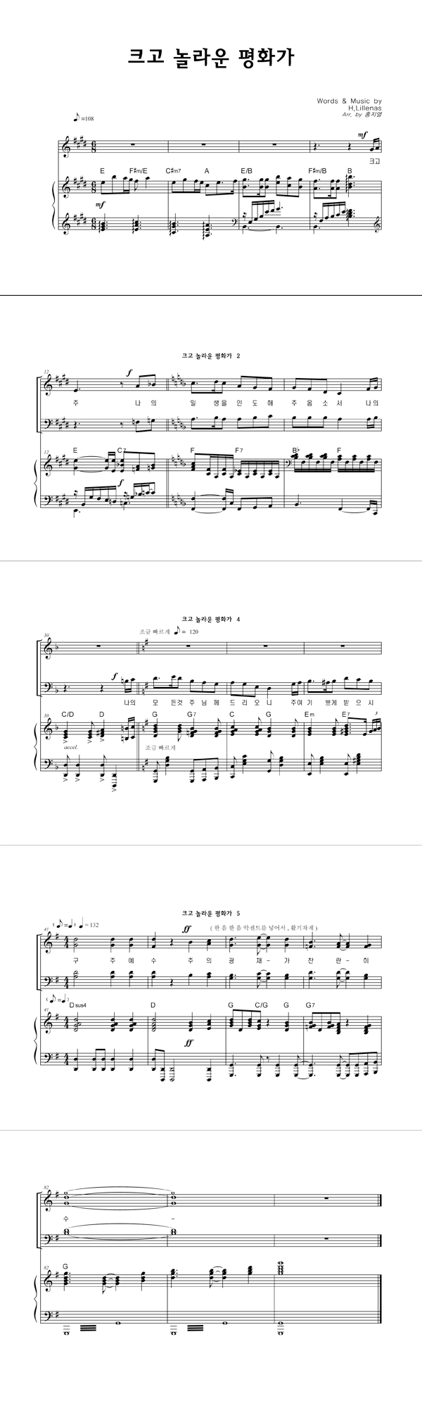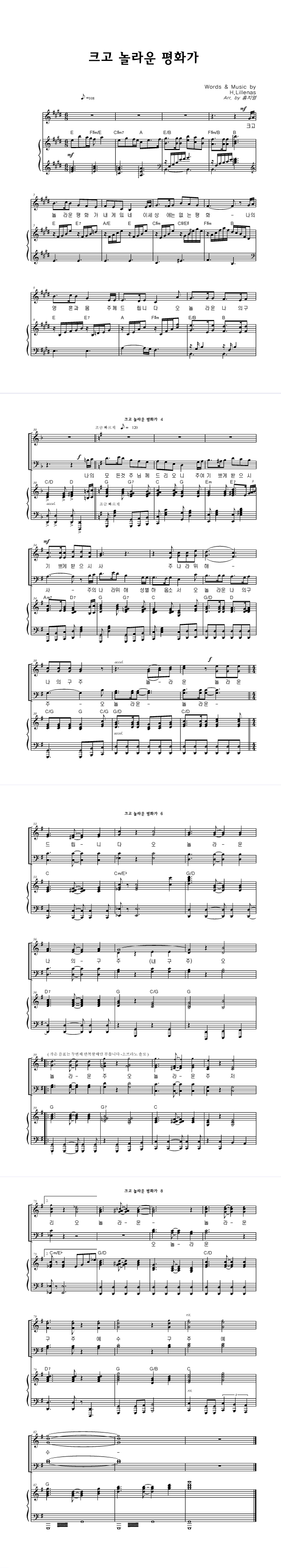 '크고 놀라운 평화가' 의 악보