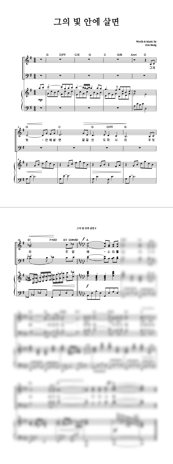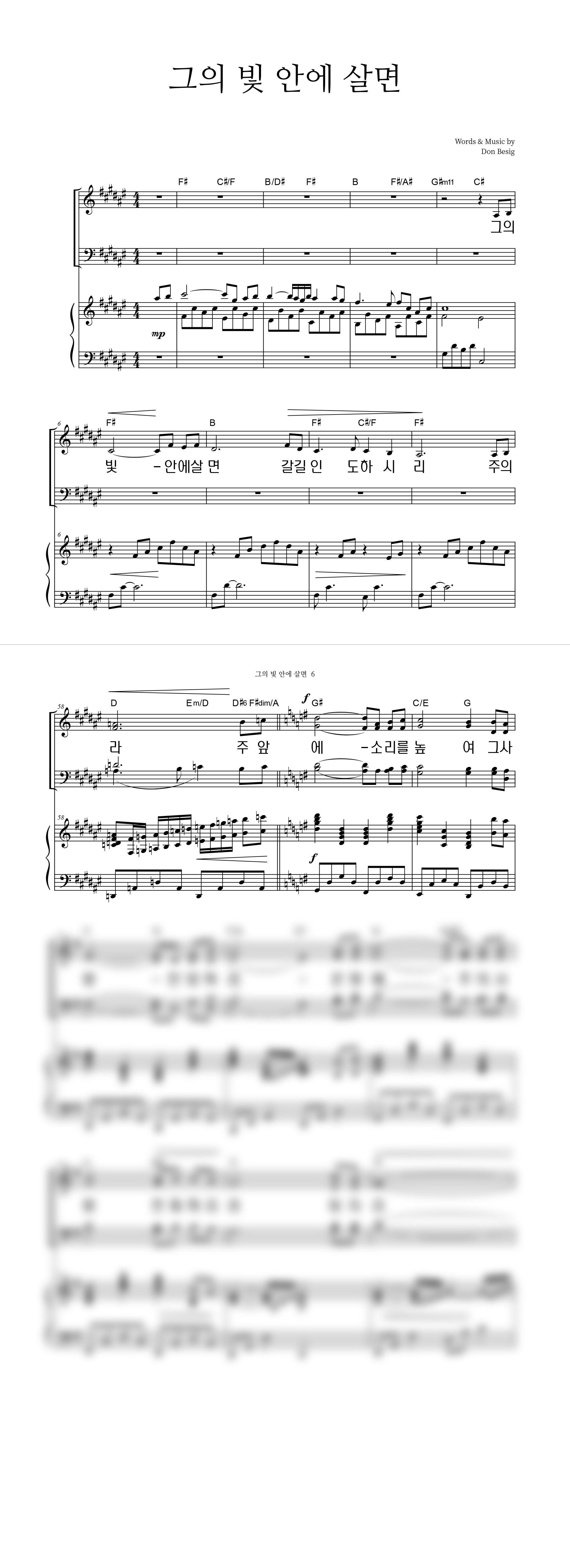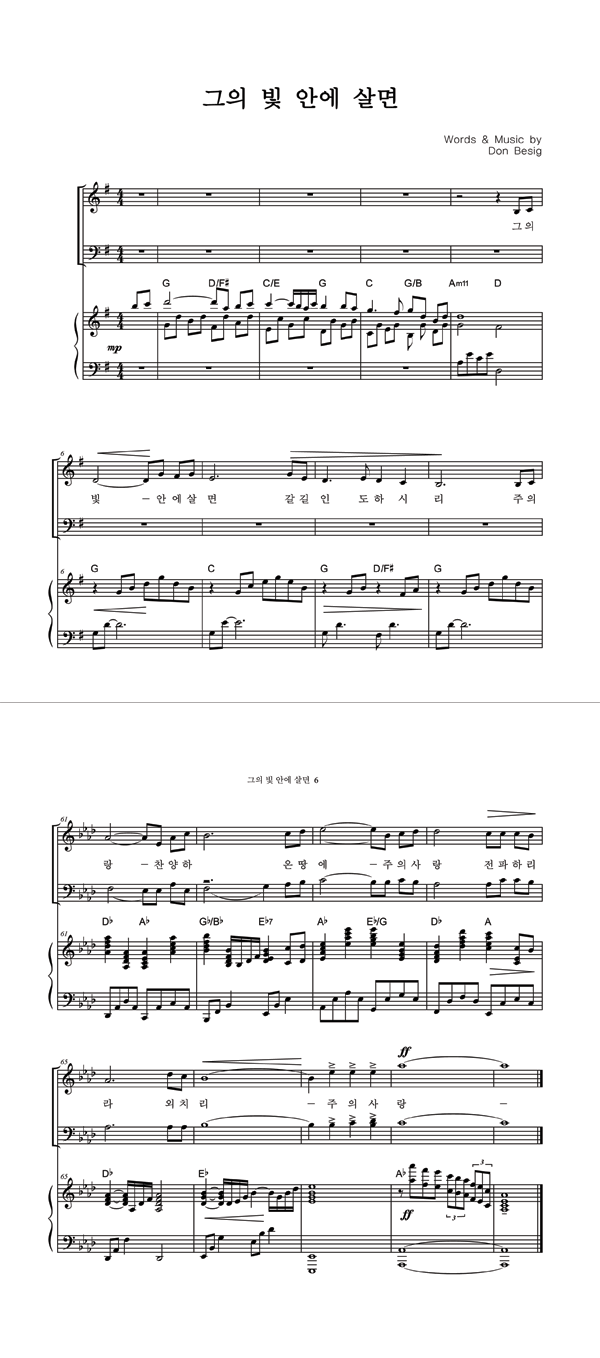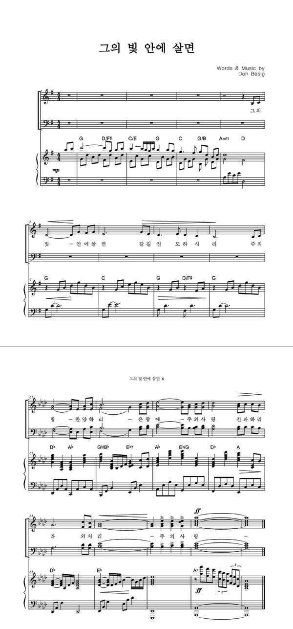 '그의 빛 안에 살면' 의 악보
