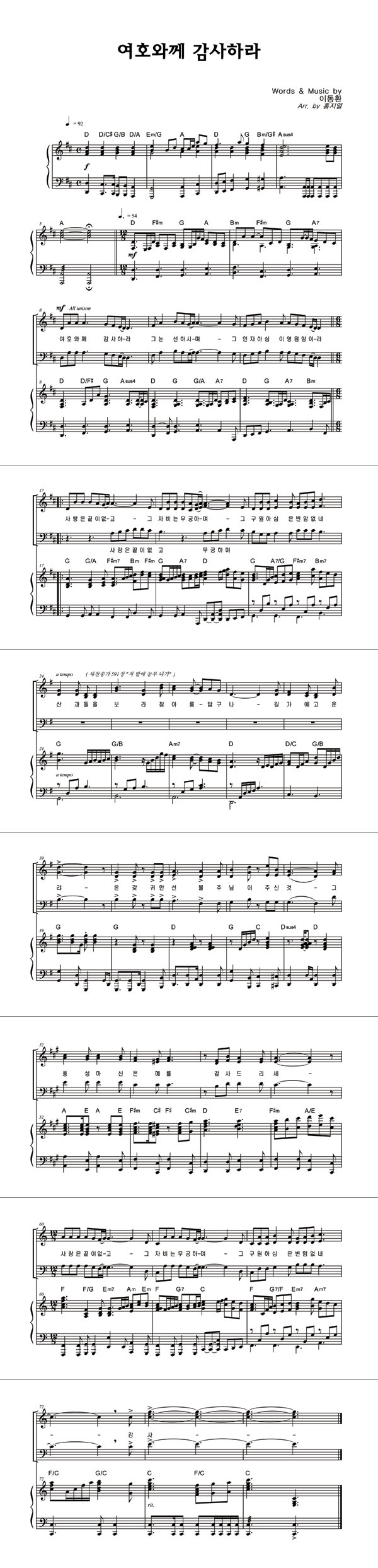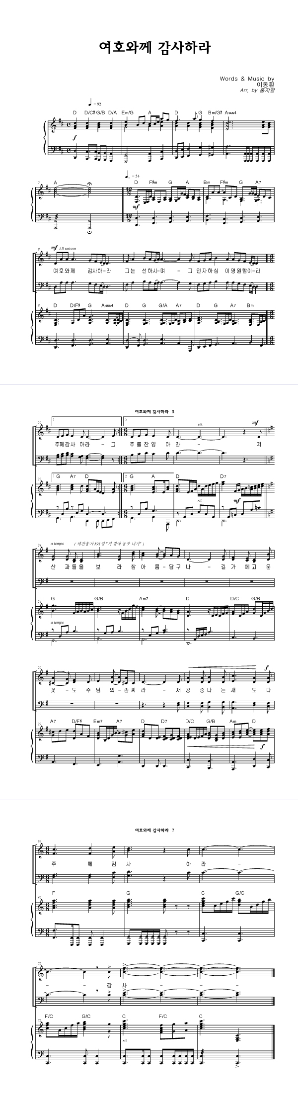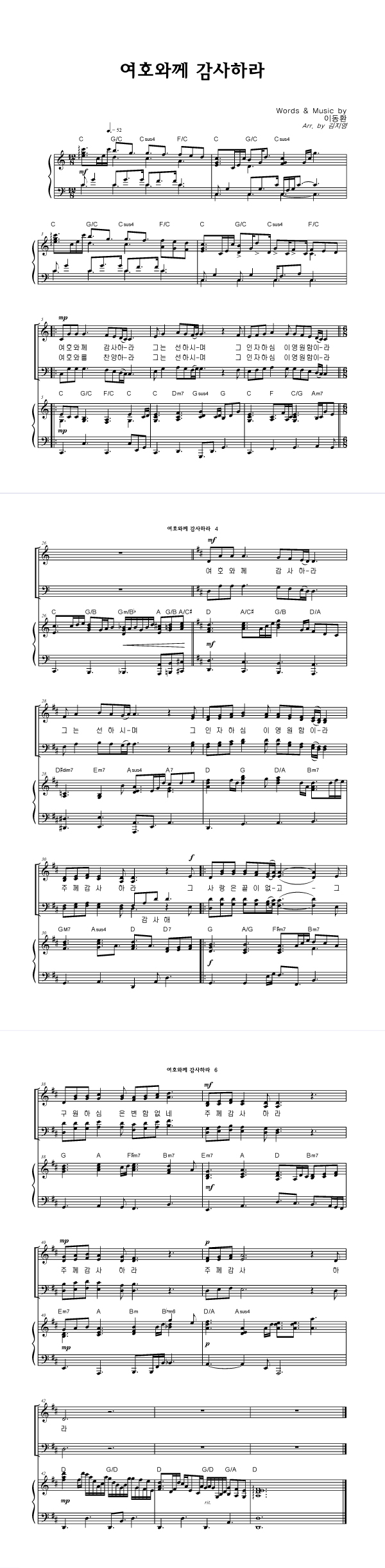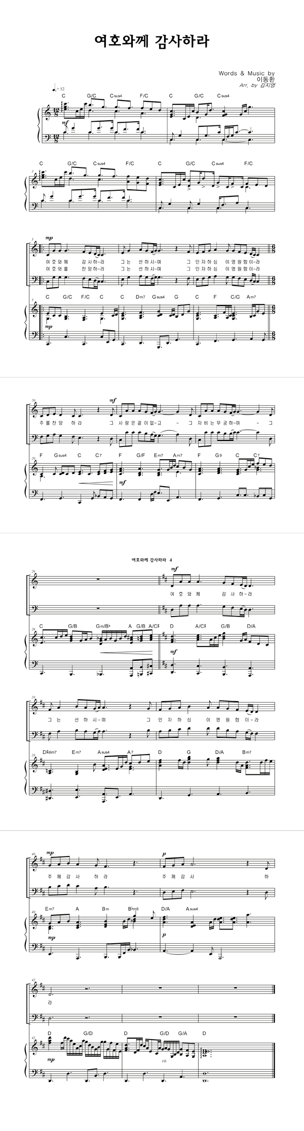 '여호와께 감사하라' 의 악보