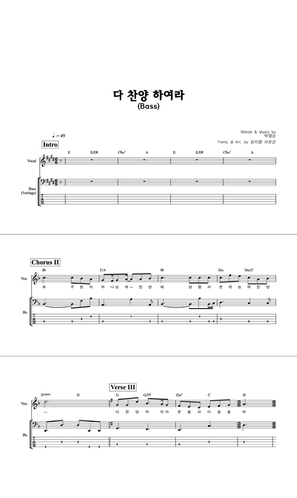 '다 찬양하여라' 의 악보
