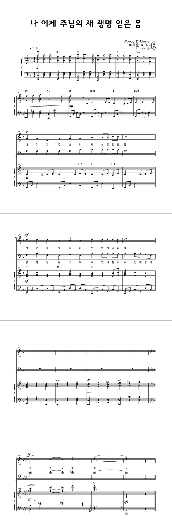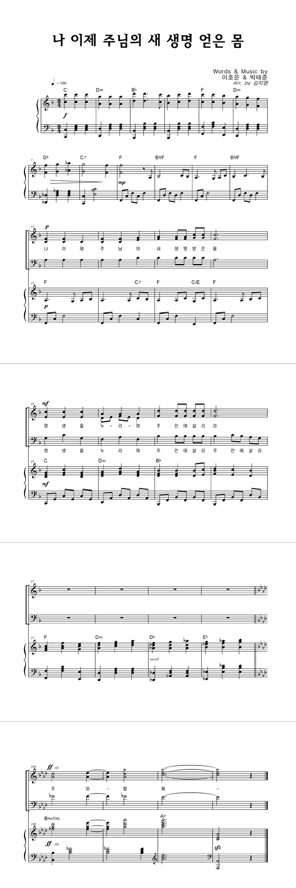 '나 이제 주님의 새 생명 얻은 몸' 의 악보