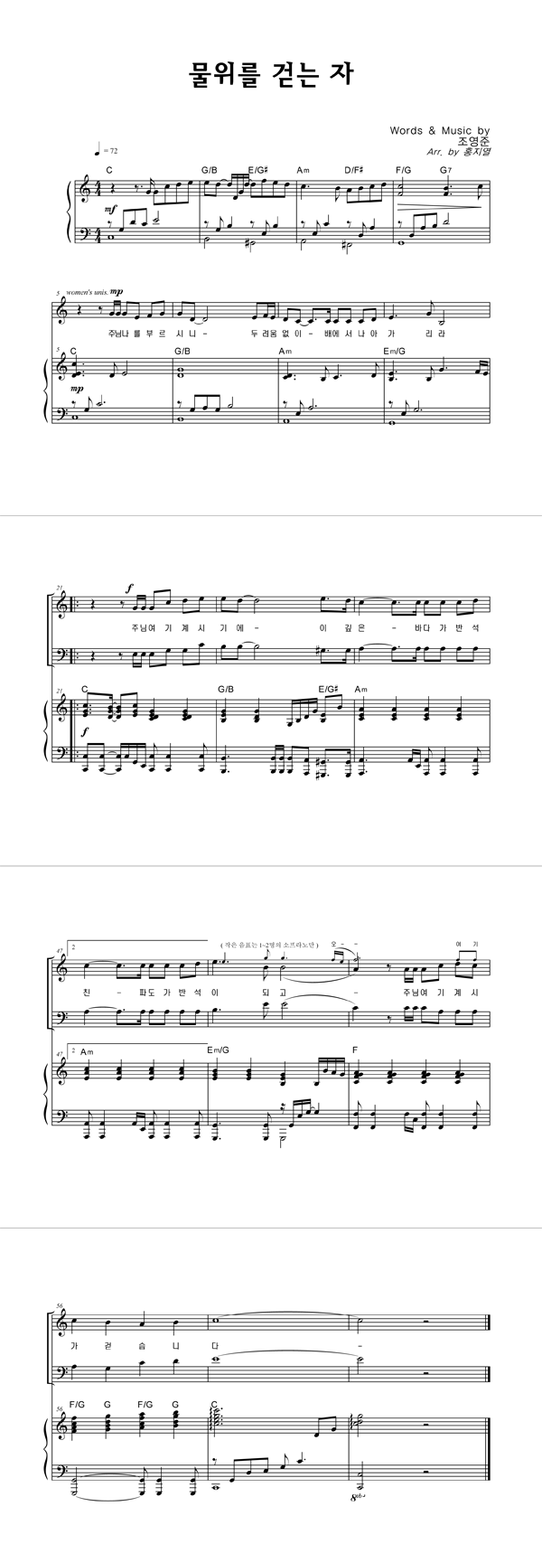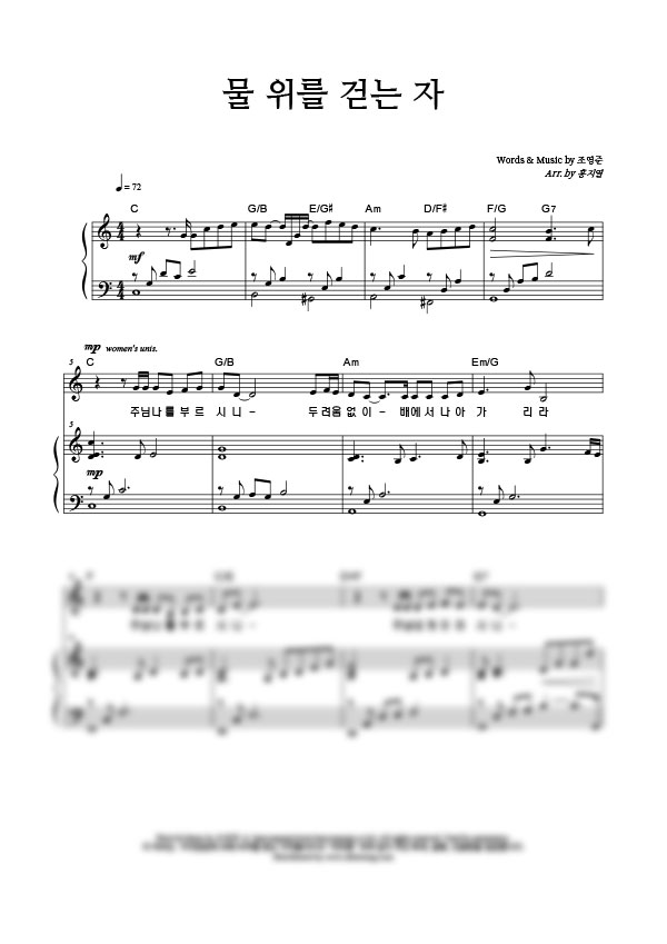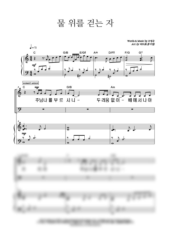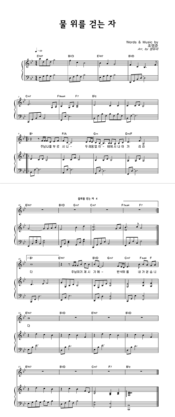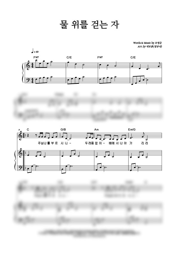'물 위를 걷는 자' 의 악보