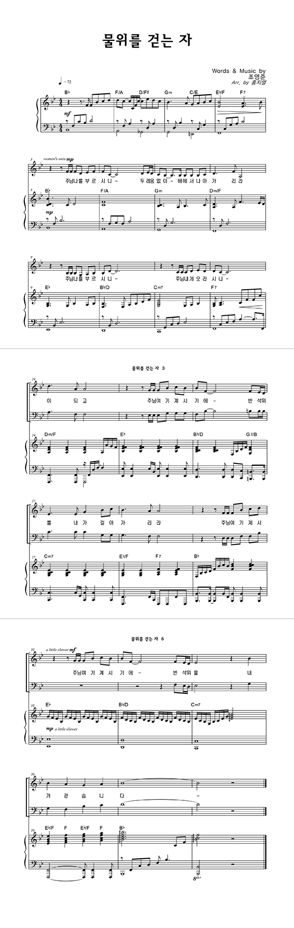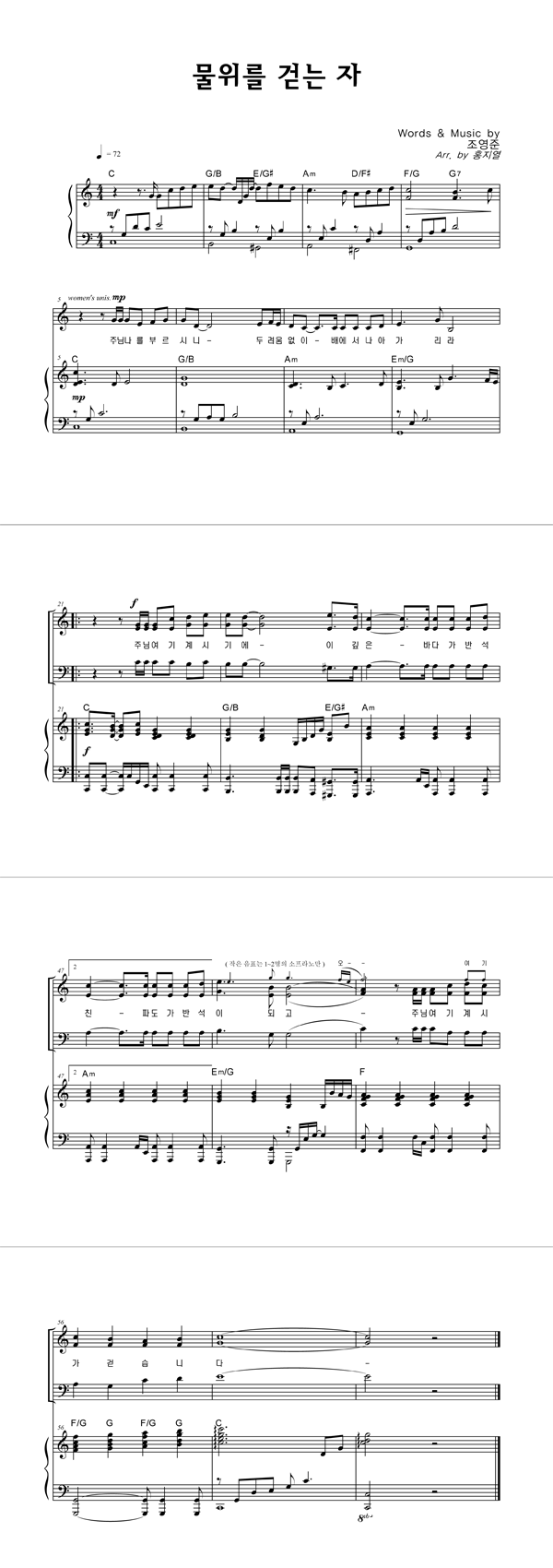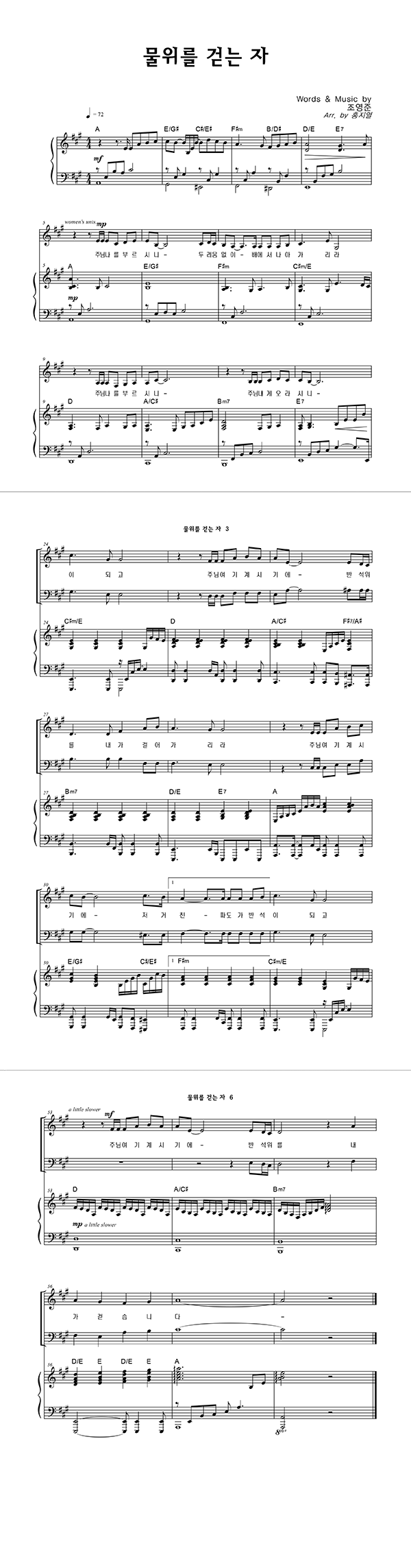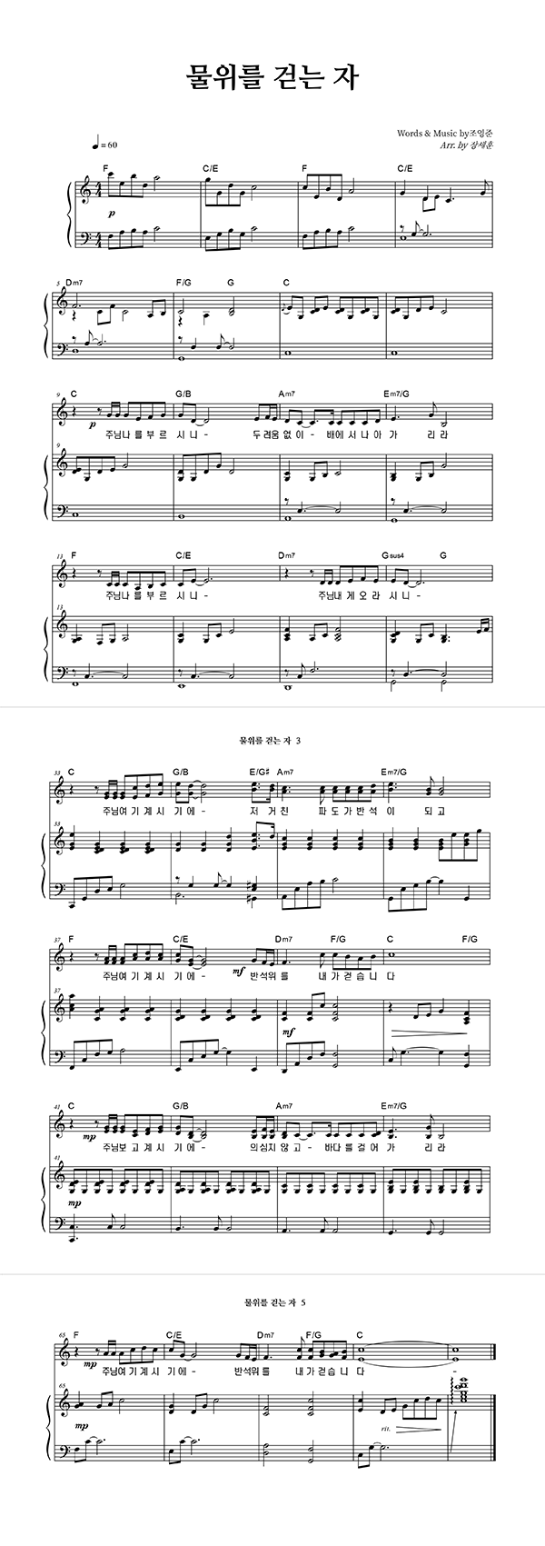 '물 위를 걷는 자' 의 악보