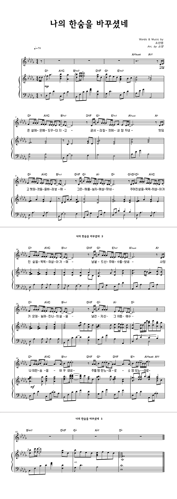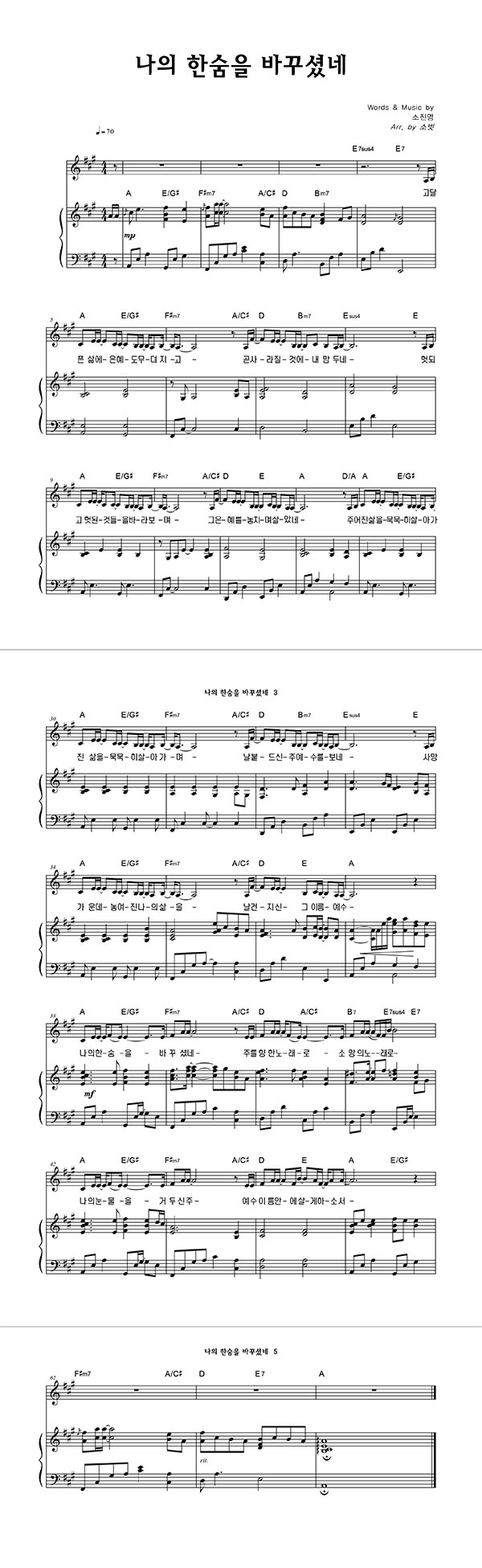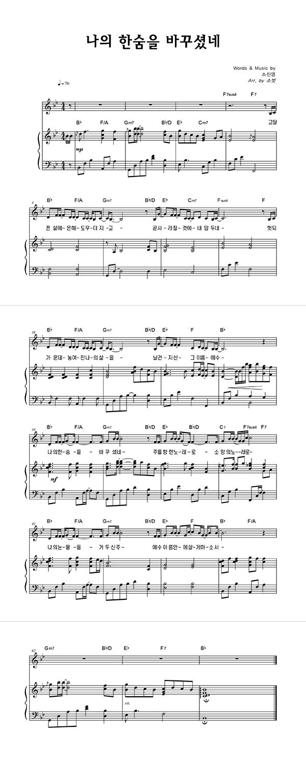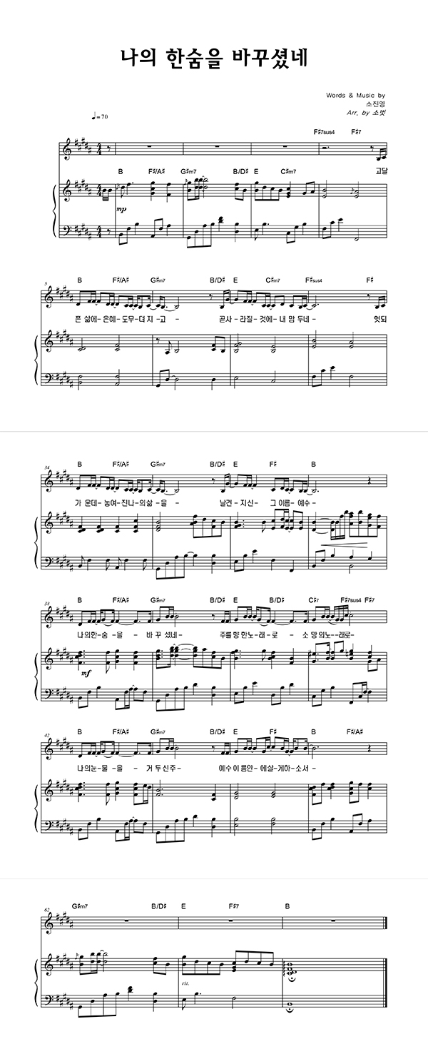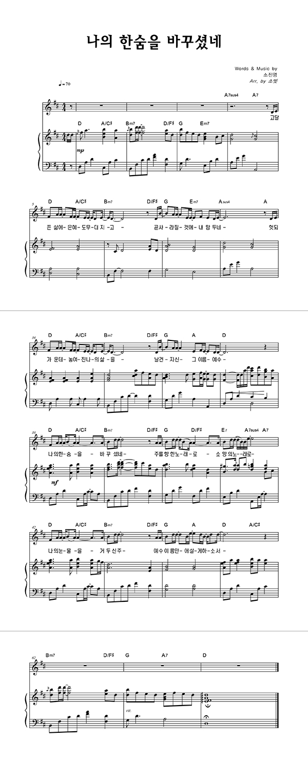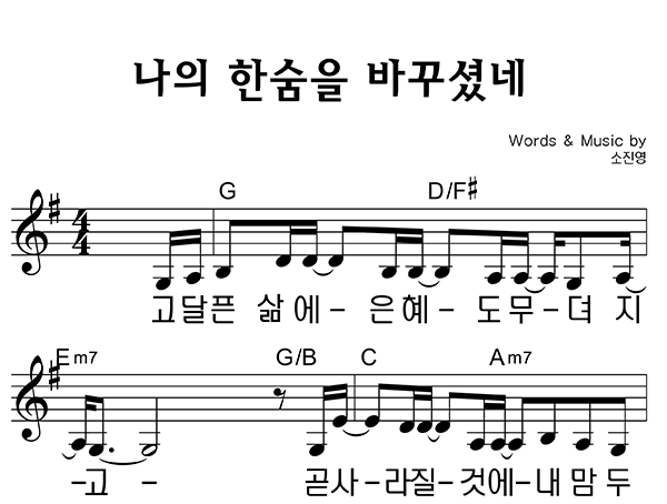 '나의 한숨을 바꾸셨네' 멜로디+피아노 악보 arr. by 소벗 | 마커스 소진영